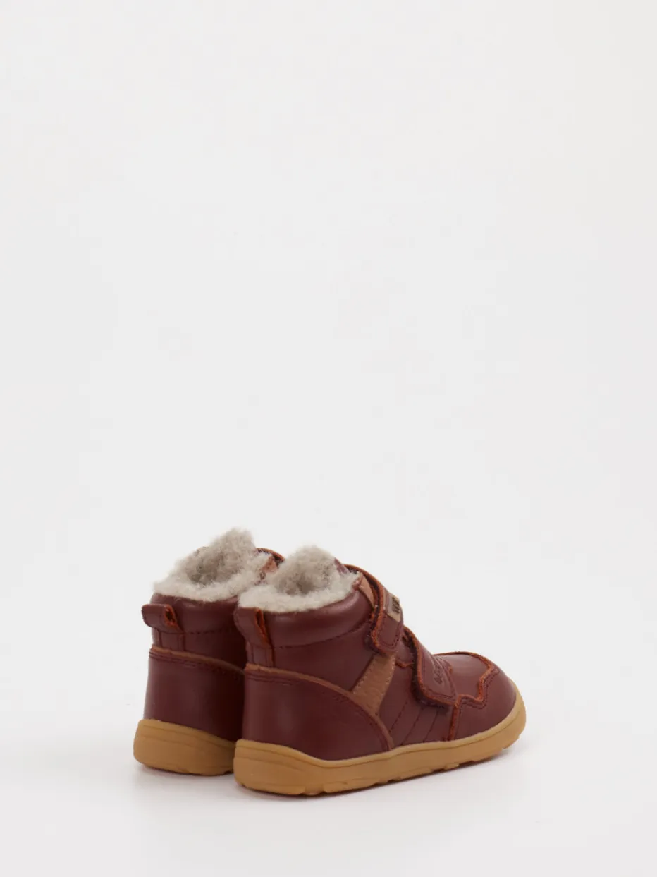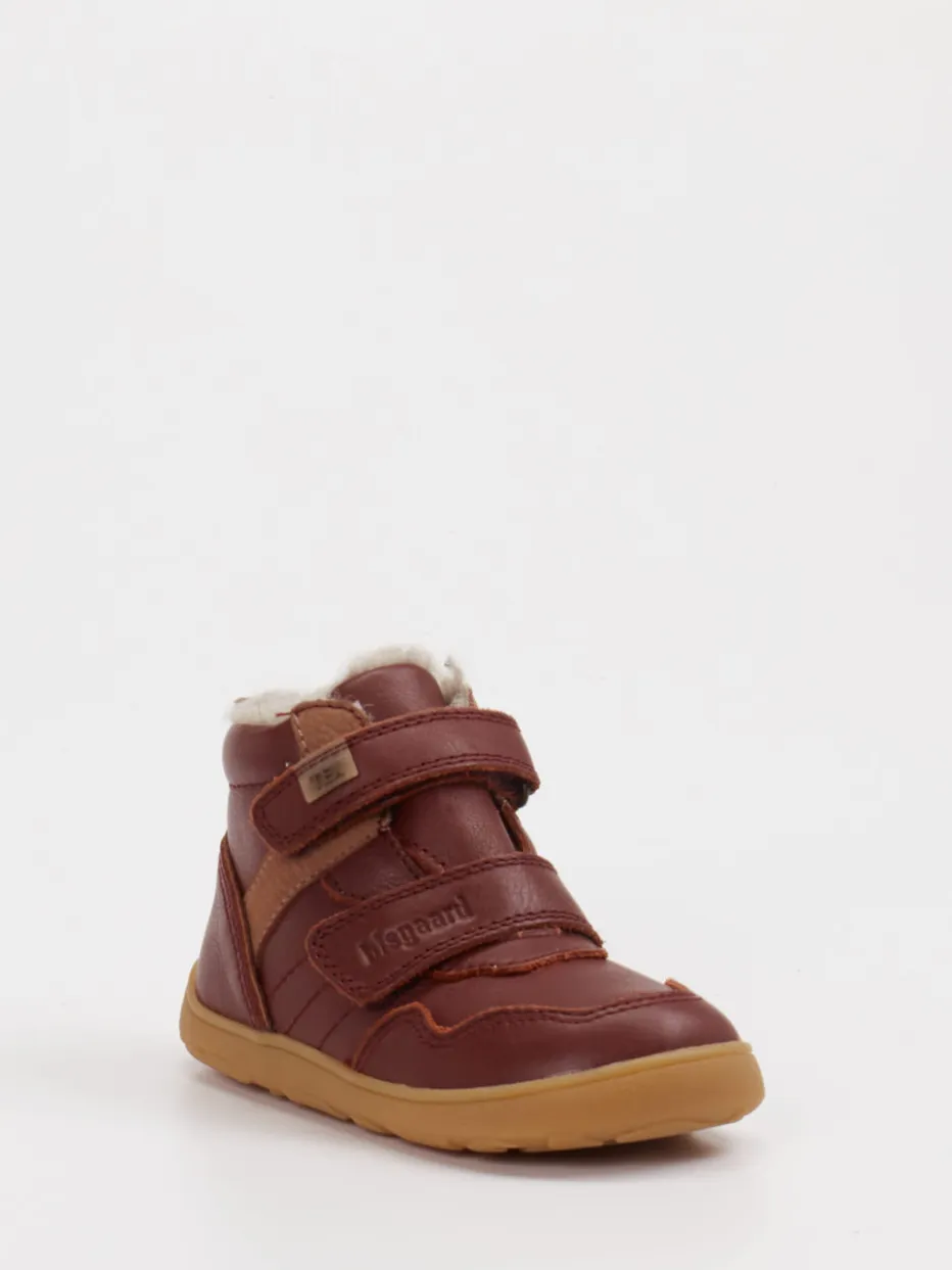 Stilvoll durch Wind und Wetter. Bisgaard präsentiert robuste Kinder-Stiefeletten in rotbraunem Leder mit praktischem Klettverschluss. Ideal für Herbstspaziergänge und winterliche Spielplatzbesuche: Das weiche Wollfutter spendet angenehme Wärme, während die knöchelhohe Silhouette mit matt strukturierter Oberfläche und Ton-in-Ton-Nähten für ein cleanes Gesamtbild sorgt. Die rutschfeste Gummisohle mit strukturierter Profilierung verleiht Trittsicherheit, das Design ist skandinavisch inspiriert und trifft den Trend zu natürlichen Tönen. Kombiniert mit Strickjacke und Mütze entsteht ein funktionaler, stilvoller Look. Ein langlebiger Begleiter aus hochwertigen Materialien – typisch Bisgaard.