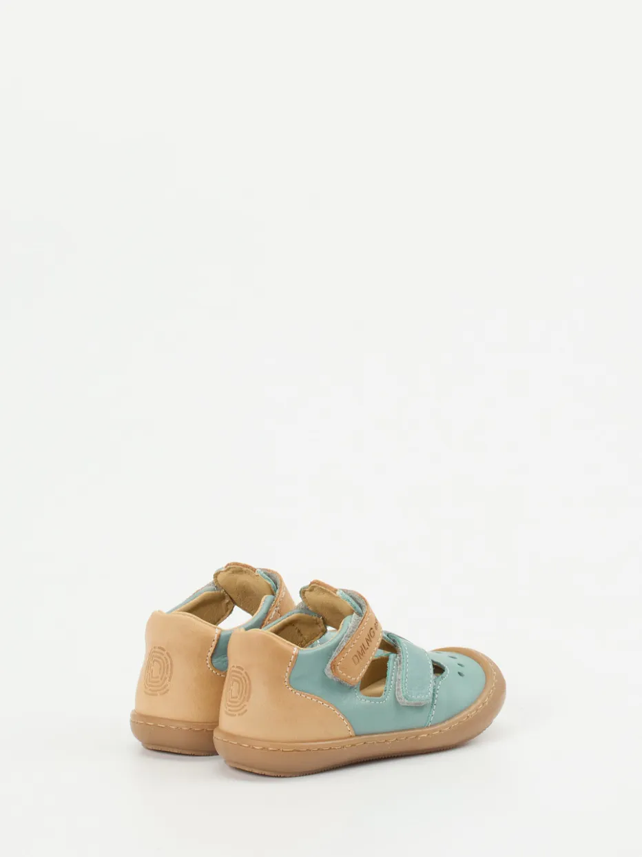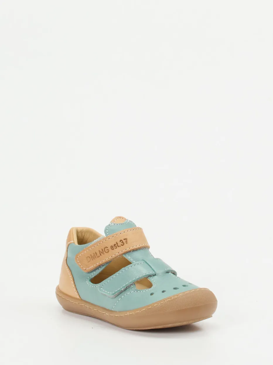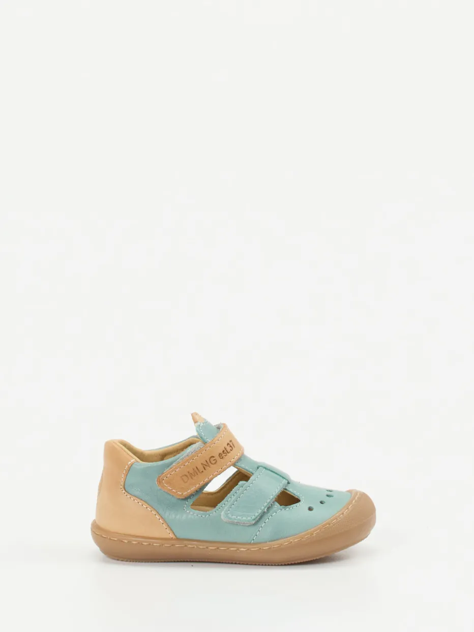 Leicht durchs Abenteuer.Däumling präsentiert eine komfortable Lauflernsandale für Kinder. Ideal für frühsommerliche Ausflüge auf sicheren Sohlen: Das hochwertig verarbeitete Kalbleder zeigt sich in einem frischen Mintgrün mit karamellfarbenen Details und samtig-matter Oberfläche. Der geschlossene Schuh mit Cut-Outs kombiniert skandinavisch inspiriertes Design mit praktischer Funktionalität. Zwei Klettverschlüsse ermöglichen individuelle Weitenregulierung, während die flexible Gummisohle für Trittsicherheit sorgt. Eine weiche Polsterung am Schaftrand sowie atmungsaktives Innenfutter erhöhen den Tragekomfort. Passt hervorragend zu leichten Outfits im Retro-Stil. Däumling verbindet Qualität, Trageergonomie und kindgerechten Stil mit bewährter Expertise.