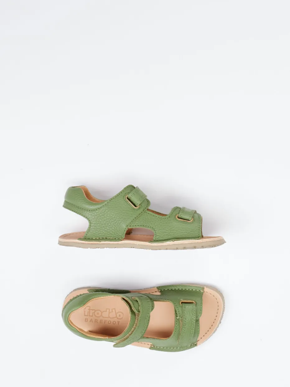 Barfußkomfort im Sommeralltag. Die Marke Froddo präsentiert mit diesen Klettsandalen ein kindertaugliches Modell für warme Tage. Für Outdoor-Abenteuer oder den Urlaub am Meer bieten diese Sandalen aus genarbtem Kalbleder in Olivgrün ein flexibles Trageerlebnis. Ihre offene Form sorgt für Atmungsaktivität, während die praktische Klettverschlüsse und der weich gepolsterte Fersenbereich den Komfort erhöhen. Die rutschfeste Gummisohle unterstützt das Barfußlaufgefühl, inspiriert vom Neo-Nature-Trend. Dezente Prägungen und Ton-in-Ton-Nähte unterstreichen den minimalistischen Look. Ein funktionales Design mit natürlicher Ästhetik – made by Froddo.