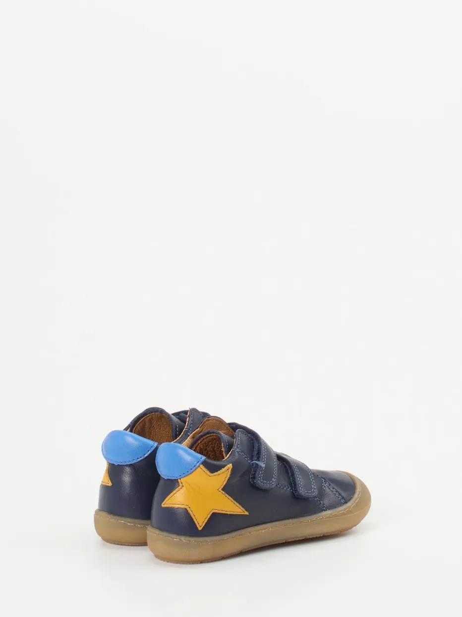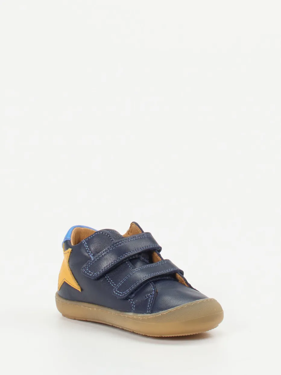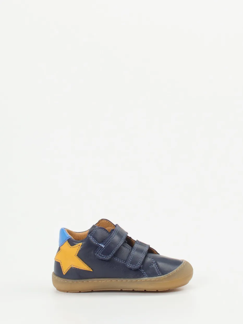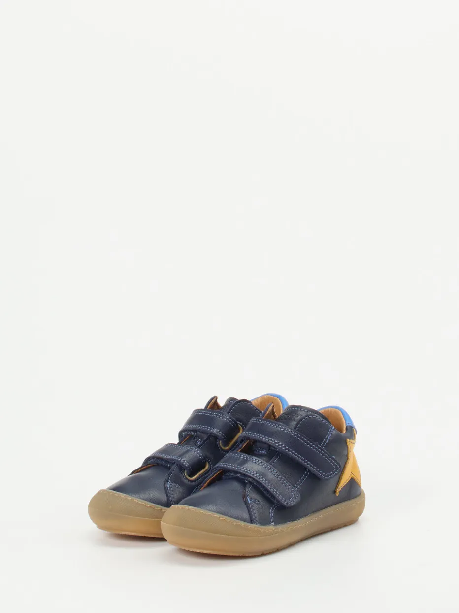 Perfekter Einstieg in die ersten Schritte.Froddo präsentiert mit diesem dunkelblauen Lauflernschuh ein bequemes Modell für kleine Entdecker. Dank flexiblem Kalbleder mit matter Oberfläche und cognacfarbenem Innenfutter bietet der Schuh hohen Tragekomfort. Eine gelbe Sternapplikation und der himmelblaue Fersenpatch setzen spielerische Akzente. Zwei Klettverschlüsse erleichtern das Anziehen und sorgen für einen sicheren Sitz. Die profilierte Gummisohle mit Krabbelschutz unterstützt dabei den natürlichen Bewegungsablauf. Der Look orientiert sich an skandinavischer Schlichtheit mit kindgerechten Details – ideal für Alltag und Kita. Sorgfältig verarbeitet mit Fokus auf Bewegungsfreiheit und Komfort.