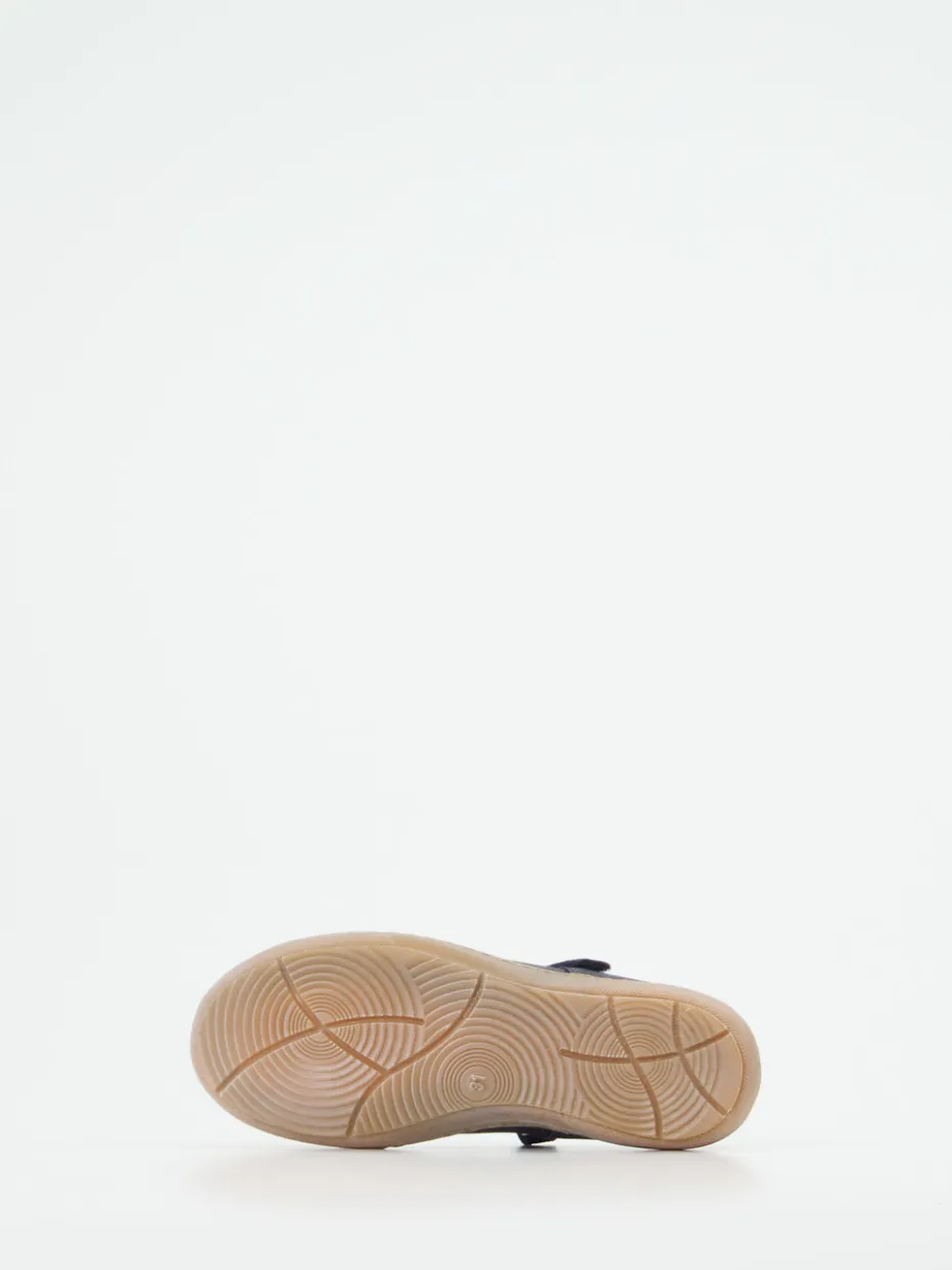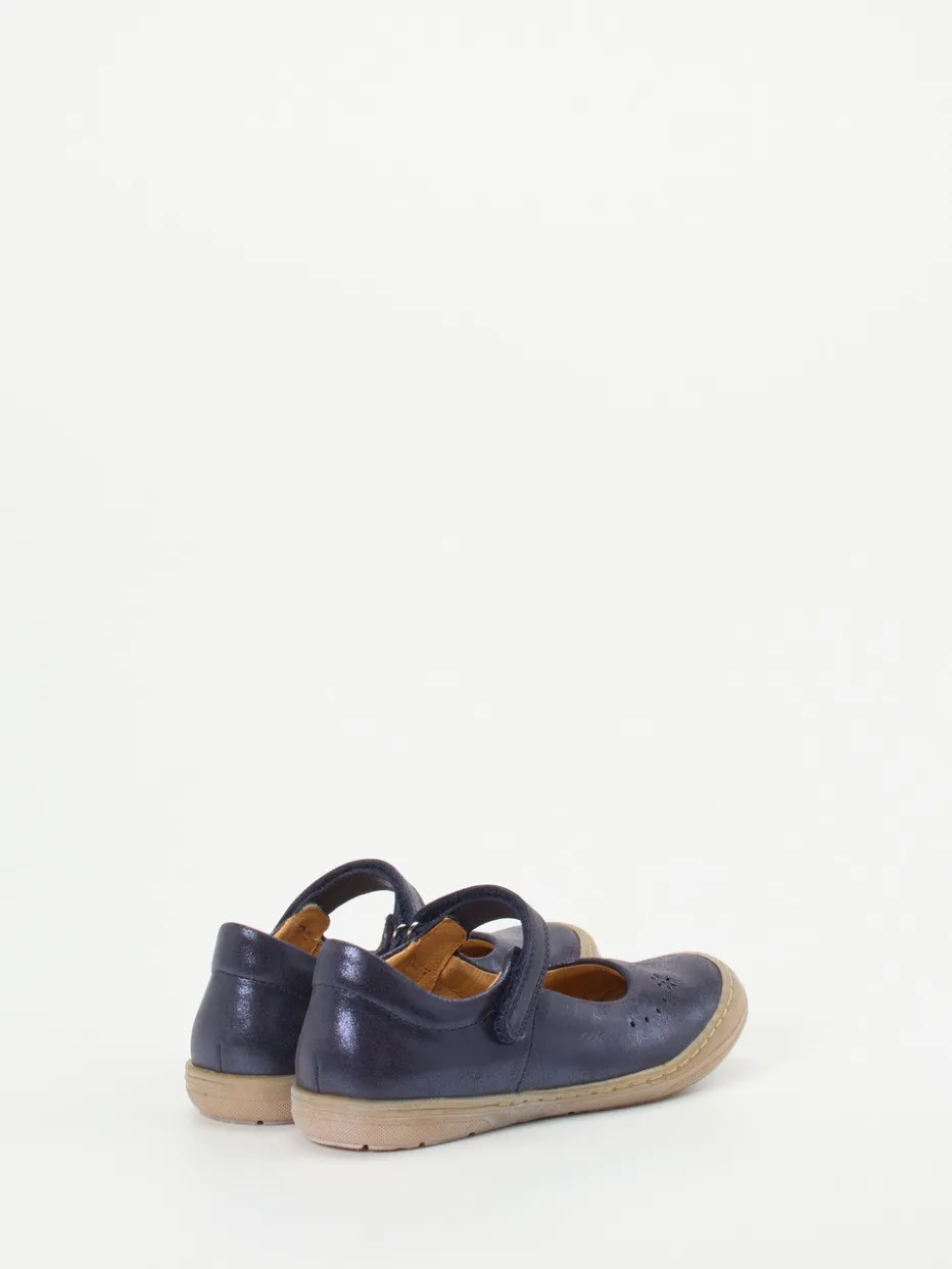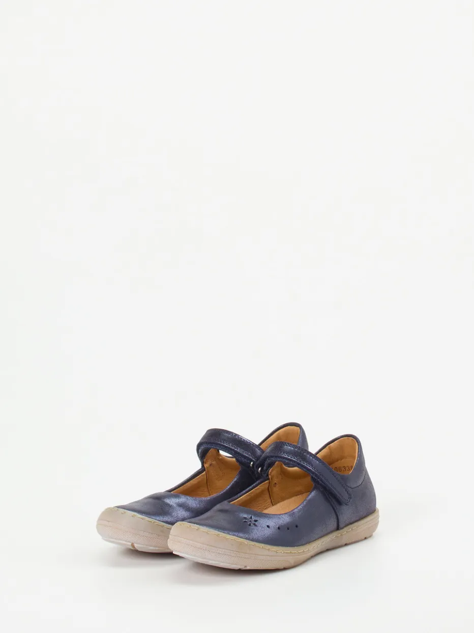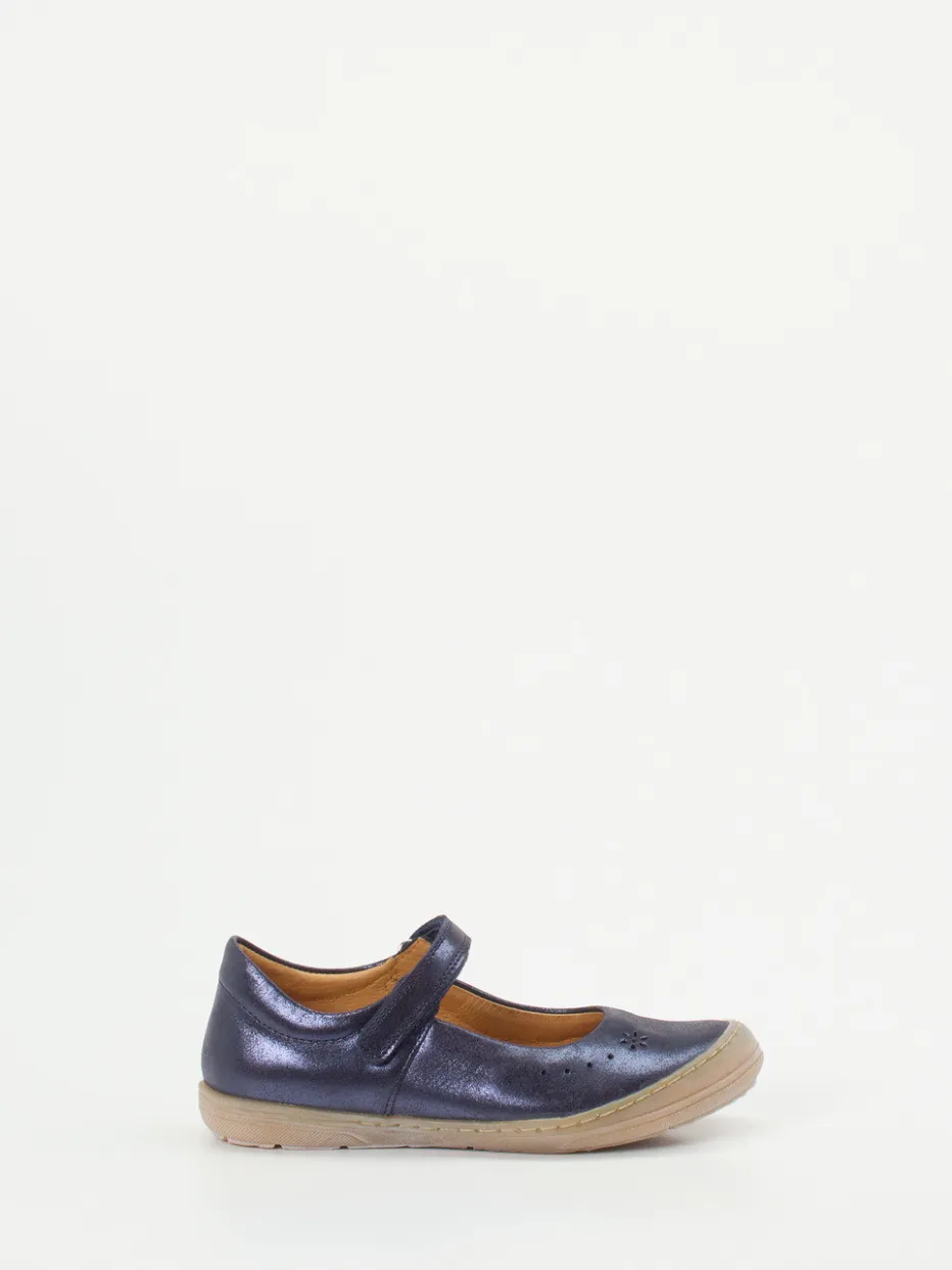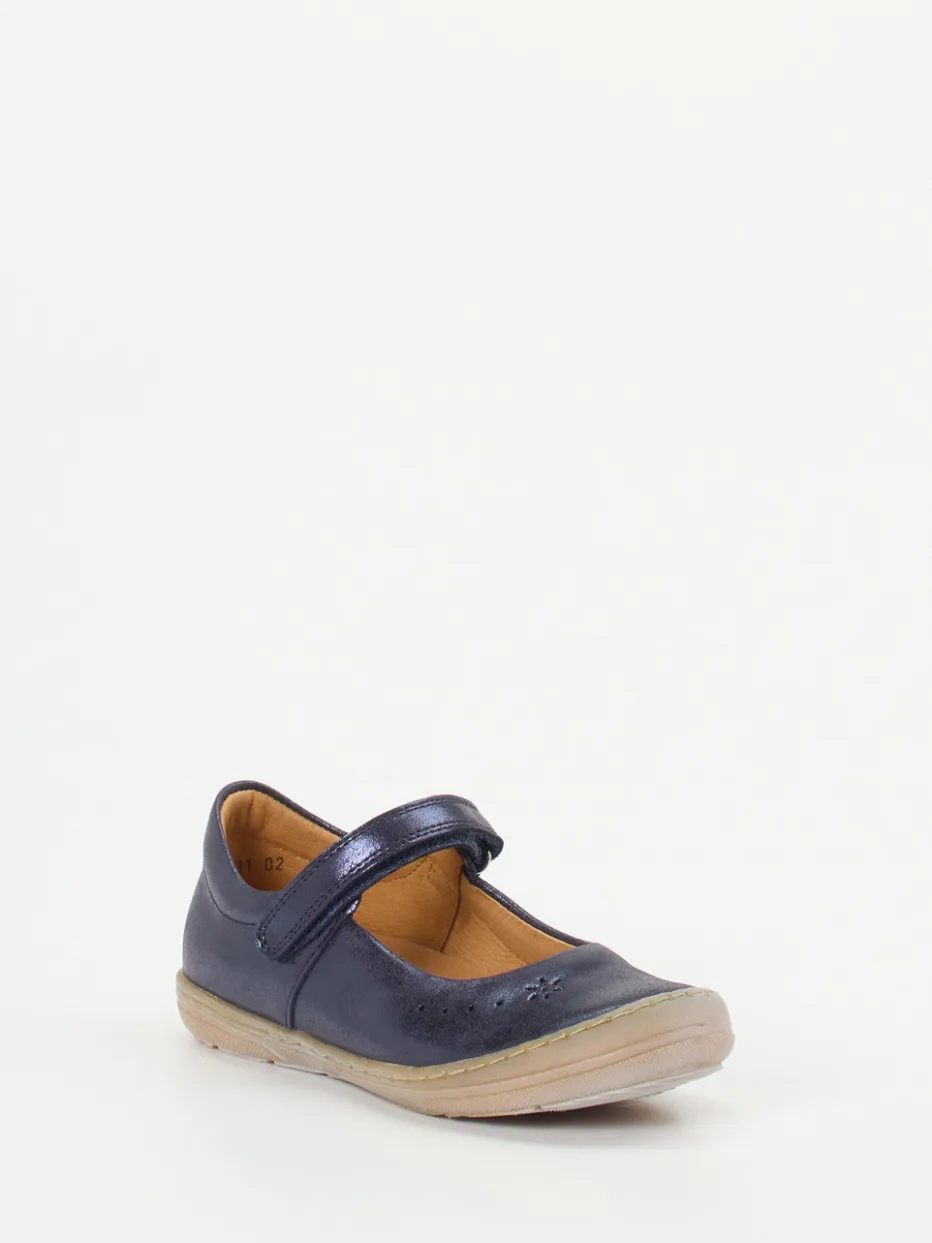 Glanzvoll durch jeden Sommertag.Die Marke Froddo präsentiert kindgerechte Mary-Jane-Halbschuhe aus ihrer aktuellen Kollektion. Ideal für Alltag und Spielplatz: Das geprägte Leder in Dunkelblau metallic bringt sommerlichen Glanz ins Kinder-Outfit. Die abgerundete Form, die dezente Lochmusterung und der schlanke Klettverschluss sorgen für ein harmonisches Design mit praktischer Note. Eine weiche Leder-Innensohle sowie ein gepolstertes, austauschbares Fußbett bieten Komfort und ein angenehmes Fußklima. Der skandinavisch inspirierte Look trifft auf eine rutschhemmende Gummisohle in Honigton – ideal für bewegte Stunden. Kombiniert zu Leggings oder Shorts entsteht ein lässiger Freizeitstil. Froddo verbindet durchdachte Details mit hochwertigem Leder und altersgerechtem Tragekomfort.