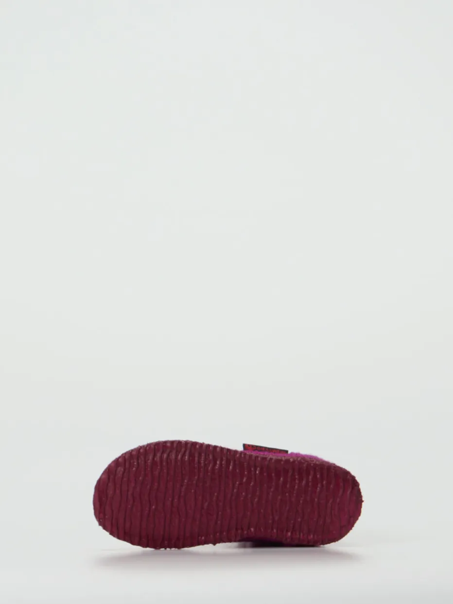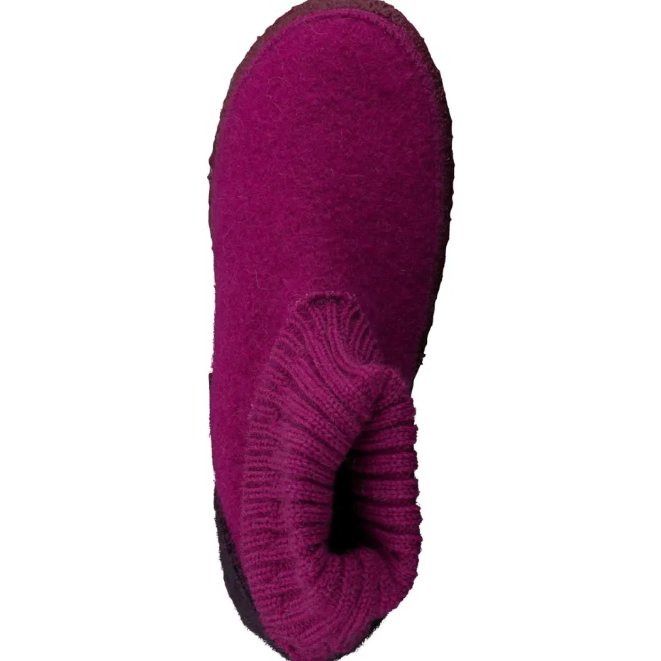 Die beerenpinkfarbene Schurwolle mit gestricktem Schaftbund und pflaumenfarbener Fersenpartie sorgt für visuelle Wärme und ein angenehm softes Gefühl. Die knöchelhohe, rund zulaufende Silhouette mit elastischem Einstieg schmiegt sich komfortabel an und bleibt durch die rutschhemmende Gummisohle stets trittsicher. Inspiriert vom Alpenstil und dem aktuellen Cottagecore-Trend trifft traditionelles Design auf modernen Wohlfühlkomfort – ideal für entspannte Stunden im Zuhause. Harmoniert perfekt mit kuscheligen Wollsocken oder einem Fleece-Hausanzug.