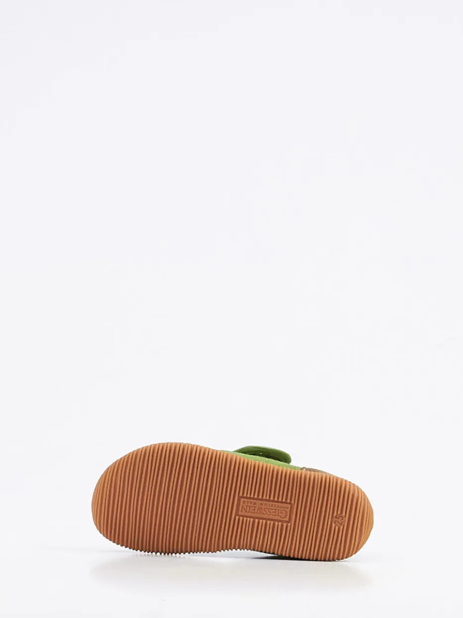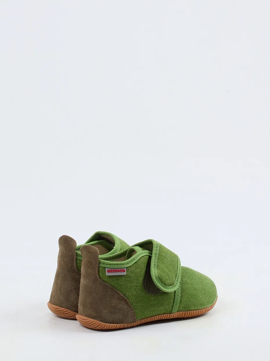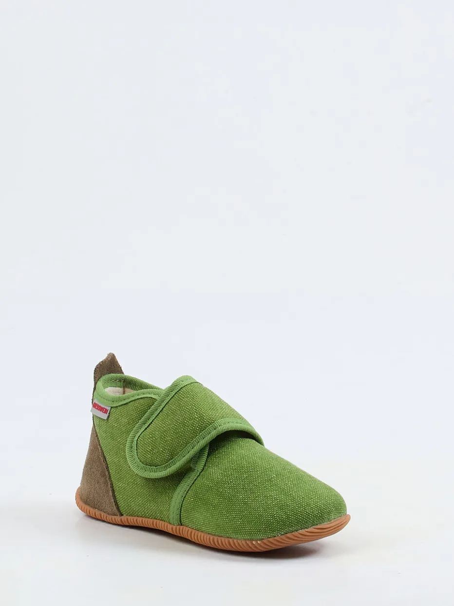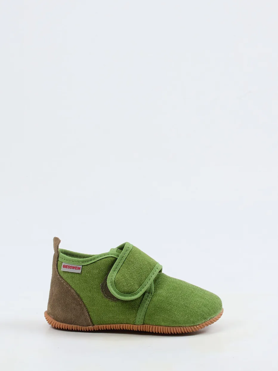 Bequemer Einstieg für kleine Füße.Die Marke Giesswein präsentiert komfortbetonte Kinder-Hausschuhe mit durchdachtem Design für Alltag und Zuhause. Die grasgrüne Farbgebung trifft auf weiches Textilmaterial, ergänzt durch eine samtig anmutende Fersenpartie aus Veloursleder. Der breite Klettverschluss ermöglicht ein leichtes Anziehen und sorgt für stabilen Halt. Eine rutschfeste Gummisohle schützt vor Nässe und verstärkt die Alltagstauglichkeit. Ton-in-Ton-Einfassungen und ein seitliches Markenlabel betonen das unaufdringliche Design im skandinavischen Stil – perfekt für Nachhaltigkeits-orientierte Familien. Ideal kombinierbar mit Frottee-Hausanzug oder Wollsocken. Ein Hausschuh mit hoher Alltagstauglichkeit – ökologisch inspiriert und kindgerecht umgesetzt.