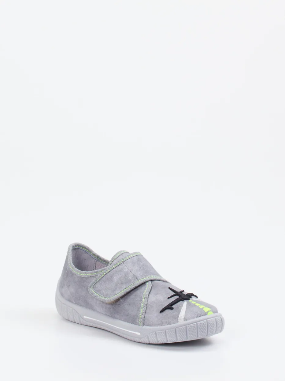 Kindgerechter Komfort trifft verspieltes Design.Superfit präsentiert einen Kinder-Hausschuh, der durch Komfort und verspielte Details begeistert. Für entspannte Stunden zu Hause oder aktive Tage im Kindergarten bietet dieser Kletthausschuh hohen Tragekomfort. Das graue Textilmaterial mit samtiger Veloursoptik ist angenehm weich und pflegeleicht. Ein fröhliches Katzenmotiv, Neonakzente und grüne Kontrastnähte bringen farbenfrohe Akzente ins Spiel. Die flache, rutschhemmende PU-Sohle sorgt für Grip auf glatten Böden, während der praktische Klettverschluss selbstständiges Anziehen erleichtert. Inspiration aus aktuellen Kinderdesign-Trends rundet den Look ab. Ein durchdachtes Alltagsmodell mit Funktionalität und kindgerechter Gestaltung von Superfit.