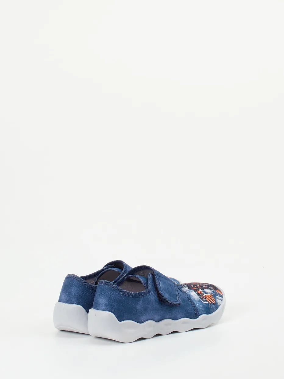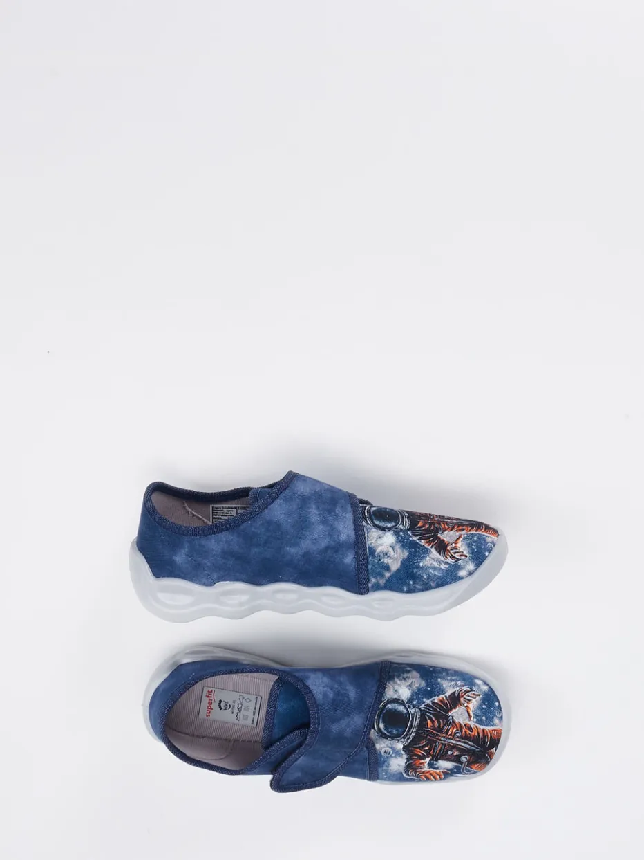 Für kleine Weltentdecker gemacht.Superfit bietet mit diesem Kinder-Hausschuh ein funktionales und stilbewusstes Modell aus strapazierfähigem Textil. Ideal für Zuhause oder entspannte Nachmittage: Das weiche Textilmaterial mit matter Oberfläche sorgt für ein angenehmes Tragegefühl. Der breite Klettverschluss erleichtert selbstständiges Anziehen, während die profilierte, PU-Sohle sicheren Halt gewährleistet. In jeansblau gehalten und mit einem auffälligen Astronauten-Print verziert, greift das Design verspielte Streetwear-Elemente auf und liegt mit dem Space-Motiv voll im Trend. Die runde, ergonomische Form unterstützt natürliche Bewegungsfreiheit – ideal kombiniert mit bequemer Loungewear oder einem Pyjama mit Sternenprint. Ein Hausschuh, der Komfort und Design kindgerecht vereint – typisch Superfit.