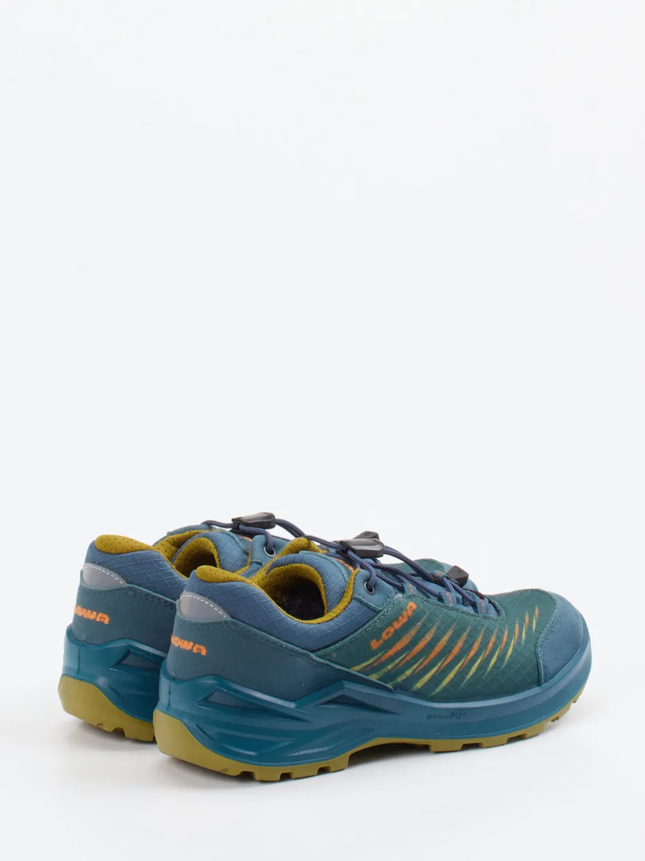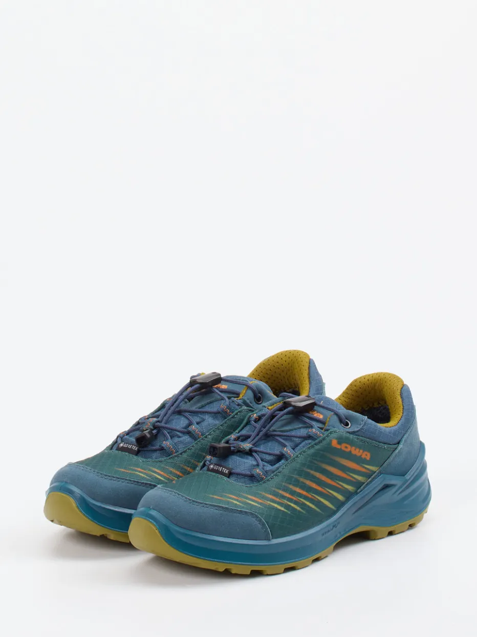 Funktion trifft Style im Gelände.Lowa präsentiert mit diesem unisex-kompatiblen Low-Cut-Wanderschuh ein modernes Hybrid-Modell für aktive Freizeit. Ideal für Urban Hiking und Outdoor-Abenteuer bietet das Design mit petrolblauem Textilmaterial, olivgrünen Akzenten und reflektierenden Details zuverlässige Sichtbarkeit und Komfort. Die matte Oberfläche ergänzt das Gesamtbild um einen trendbewussten Gorpcore-Look. Dank wasserdichter Gore-Tex-Ausstattung, gepolstertem Schaftrand und praktischem Schnellschnürsystem glänzt das Modell auch funktional. Die griffige Profilgummisohle gewährleistet Trittsicherheit auf wechselndem Terrain. Lässt sich hervorragend mit Funktionsjacke oder Streetwear kombinieren. Lowa überzeugt hier mit technischer Raffinesse und modernem Outdoor-Look für aktive Allround-Einsätze.