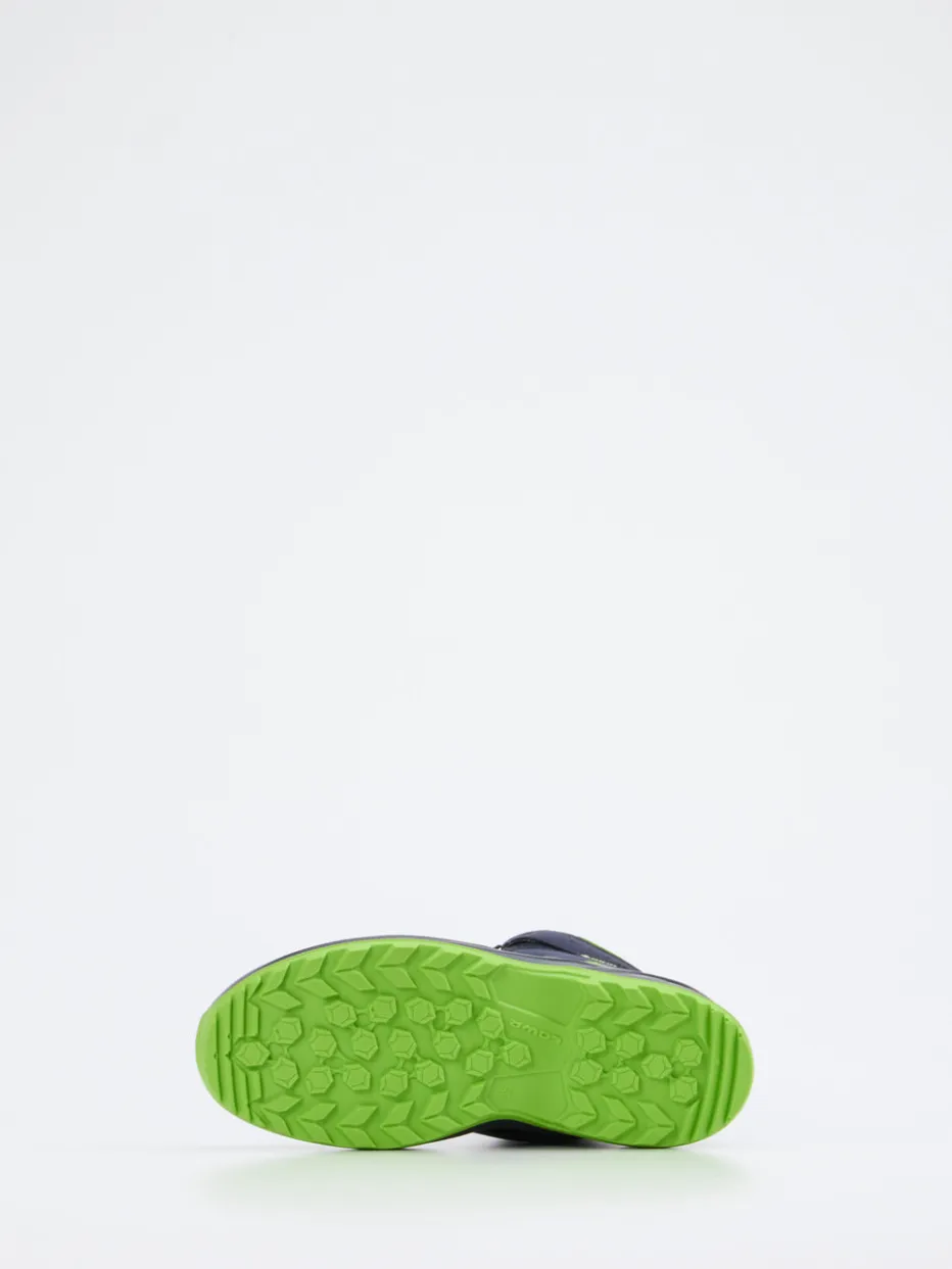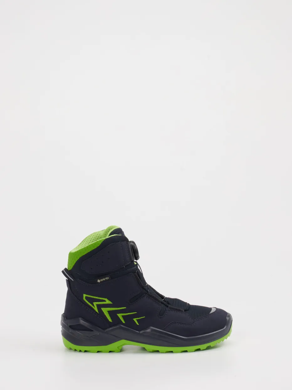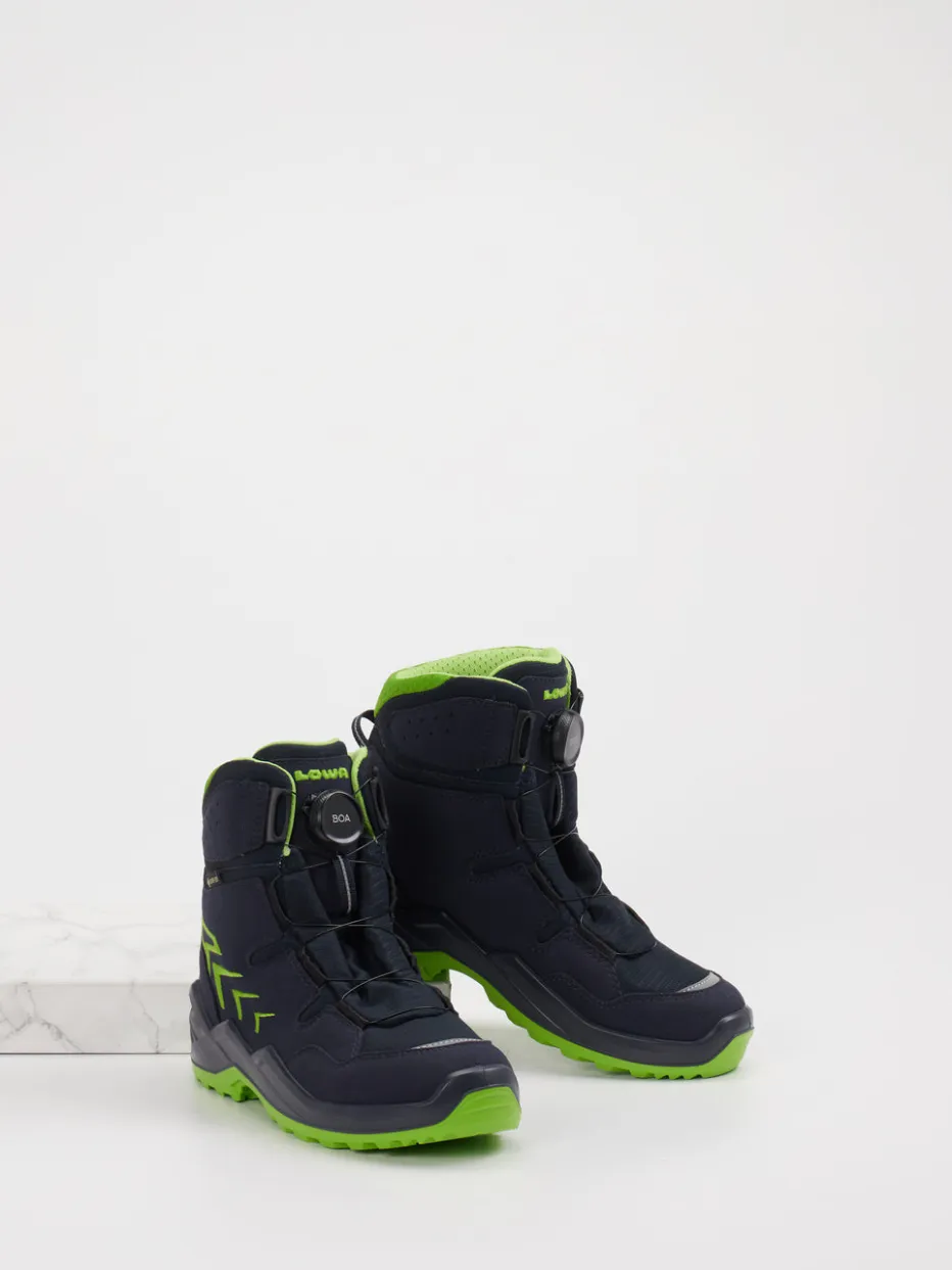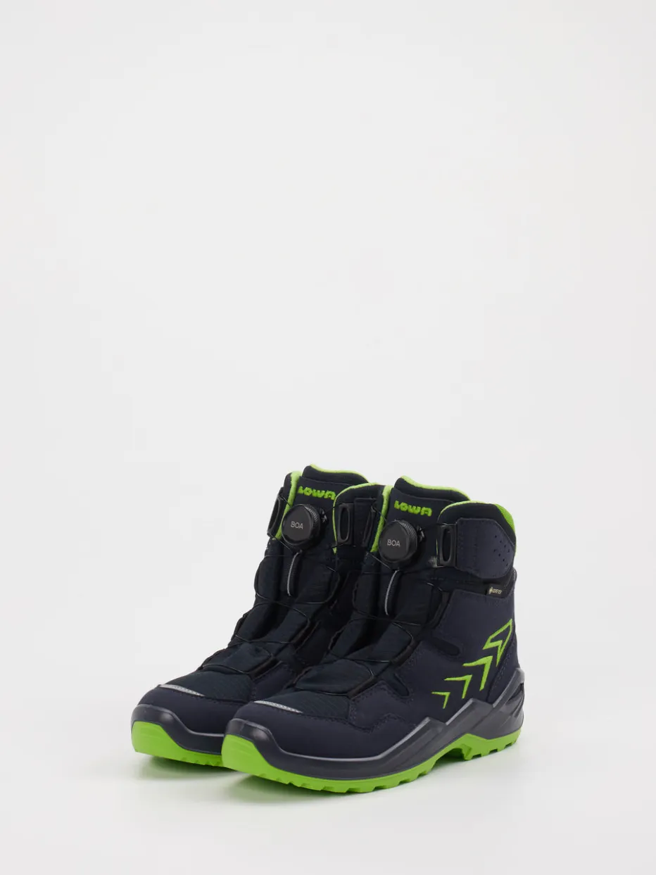Technik trifft Outdoor-Komfort. Lowa präsentiert mit diesem Kinder-Wanderstiefel einen funktionalen Begleiter für herbstliche Ausflüge und winterliche Touren. Das Modell kombiniert robustes Leder mit textilen Mesh-Einsätzen für Atmungsaktivität und ein leichtes Tragegefühl. Die dunkelblaue Basis wird durch neon-grüne Akzente und reflektierende Details dynamisch inszeniert. Dank dem BOA-Drehverschluss lässt sich der Stiefel kinderleicht justieren, während die griffige Gummisohle auf nassem und unebenem Gelände optimalen Halt bietet. Die gepolsterte Schaftkonstruktion sorgt für zusätzlichen Komfort und Schutz. Ideal in Kombination mit Funktionsjacken und Trekkingpants – perfekt für Alltag und Outdoor. Der markentypische Fokus auf Funktion und kindgerechtes Handling überzeugt auf ganzer Linie.