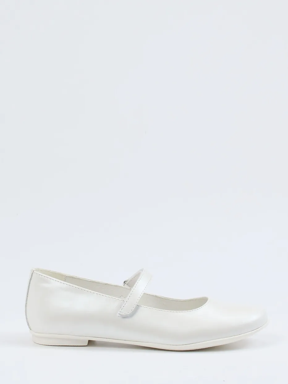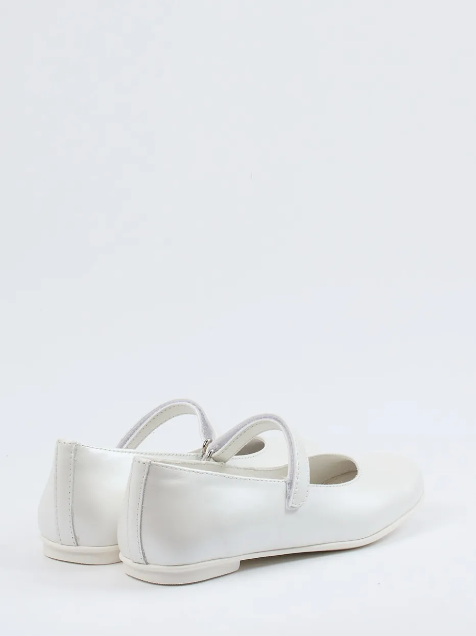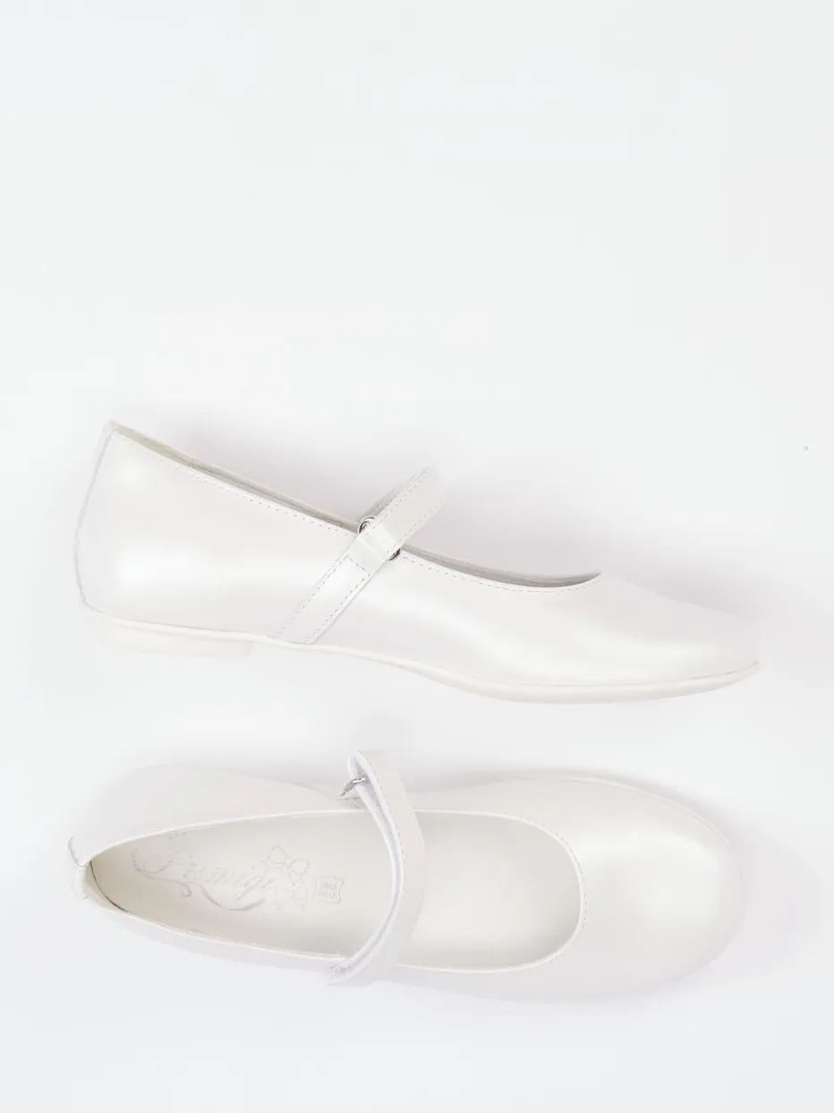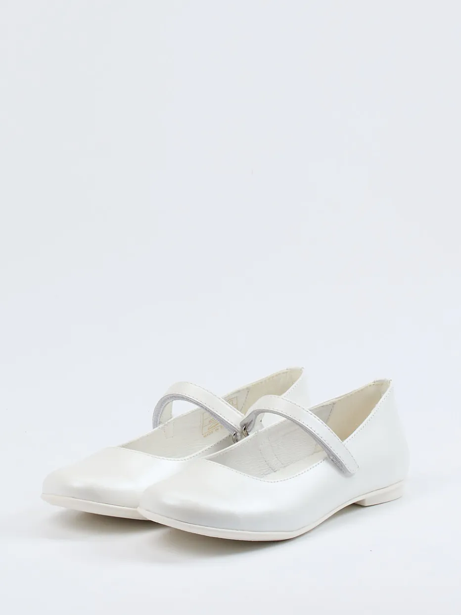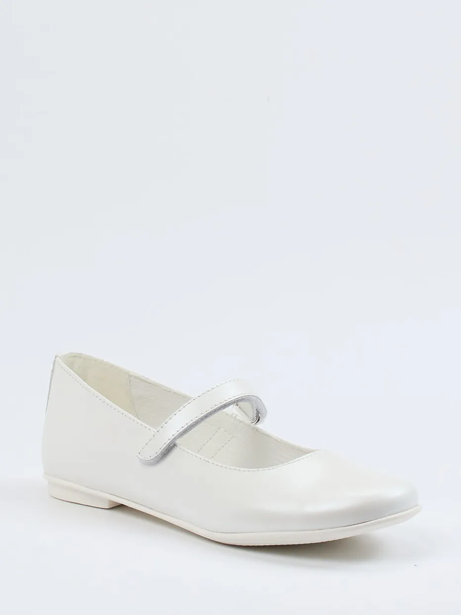 Eleganz für kleine Schritte.Primigi präsentiert diese klassische Ballerina-Kategorie in einem Mädchenmodell mit zartem Flair. Ob zur Familienfeier oder als stilvolle Ergänzung im Alltag – das glatte Kalbleder mit zartem Glanz unterstreicht die zurückhaltend-edle Optik in Elfenbeinweiß. Die runde Form, der praktische Riemen mit Klettverschluss und die flache Gummisohle bieten kindgerechten Komfort. Ton-in-Ton-Nähte und eine dezente Silhouette verweisen auf nostalgisch-inspirierte Modernität. Innen sorgt weiches Lederfutter für angenehmes Tragen. Ideal kombinierbar zu weißen Strumpfhosen oder festlichem Kleid. Zeitlose Form und Markenqualität – Primigis femininer Klassiker im Mini-Format.