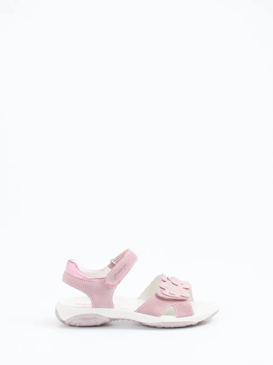 Mädchenhaft mit Glitzer und Komfort.Primigi präsentiert eine liebevoll gestaltete Sandale für Kinder. Ideal für aktive Sommertage bietet dieses Modell mit seinem rosa Veloursleder und samtig glänzender Oberfläche ein angenehmes Tragegefühl. Die offene, ergonomische Form und die gepolsterte Innensohle sorgen für anhaltenden Komfort, während der Klettverschluss kinderleichtes An- und Ausziehen ermöglicht. Glitzernde Blumenapplikationen, Metallic-Fersenakzente und eine funkelnde Laufsohle setzen verspielte Highlights, die aktuelle Pastell- und Glittertrends spiegeln. Ein femininer Freizeitschuh mit durchdachtem Design für kleine Abenteurerinnen.