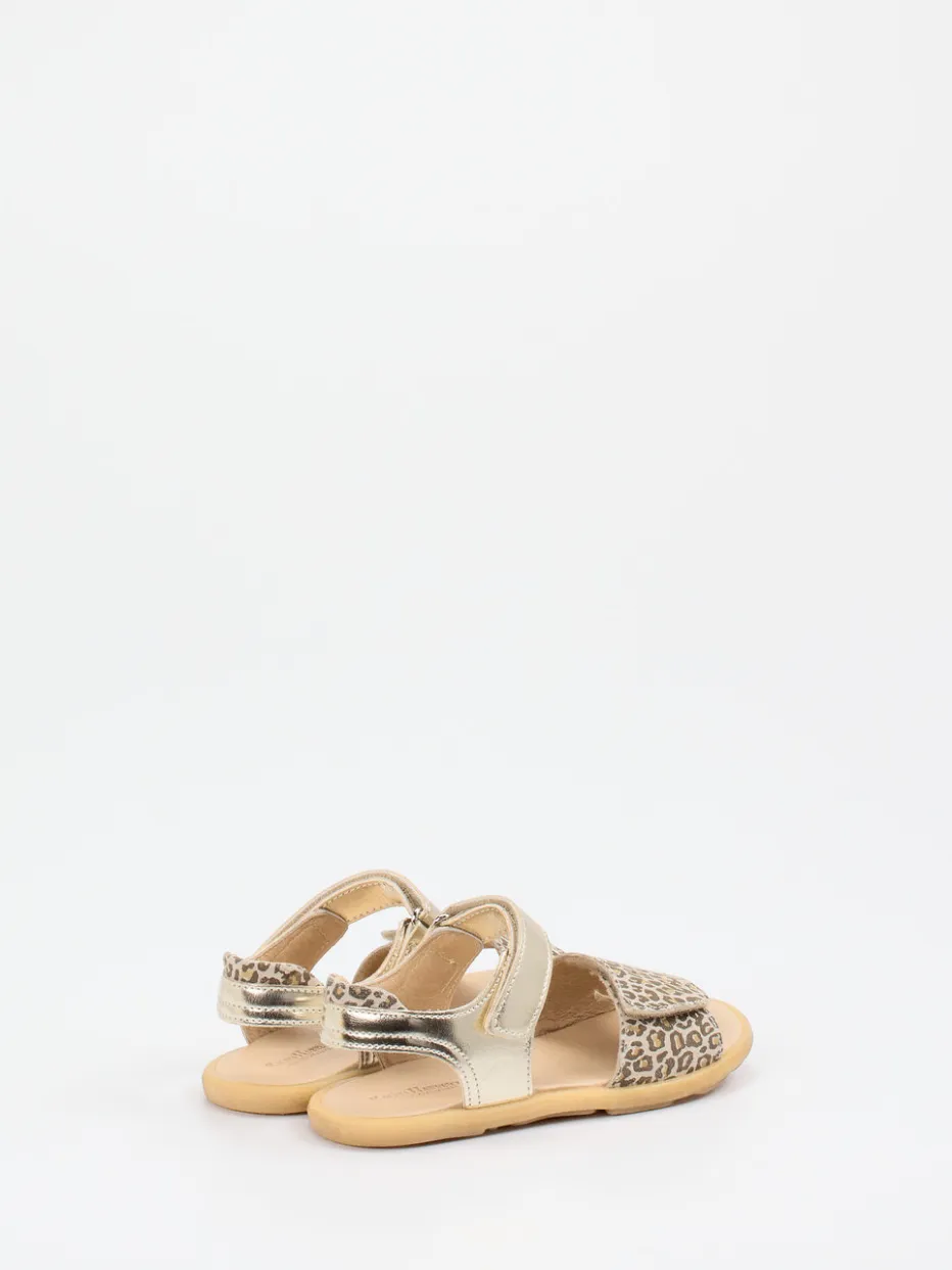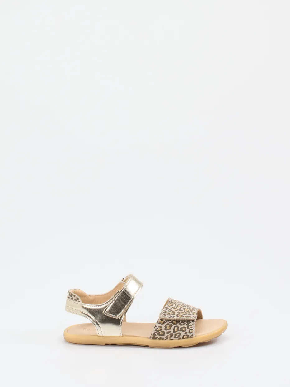 Wenn im Sommer Spielplatz oder Strand rufen, bieten diese Sandalen mit geprägtem Leder in Gold und Leoprint-Optik angenehmen Halt. Das glänzende Metallic-Finish verleiht dem Design einen modischen Touch, während die flache Form, die profilierte Gummisohle und das Innenfutter aus Leder Komfort und Trittsicherheit gewährleisten. Die offene Silhouette sorgt für Belüftung an heißen Tagen. Der Animal-Print bringt zusätzlich einen angesagten Look in die Kindergarderobe.