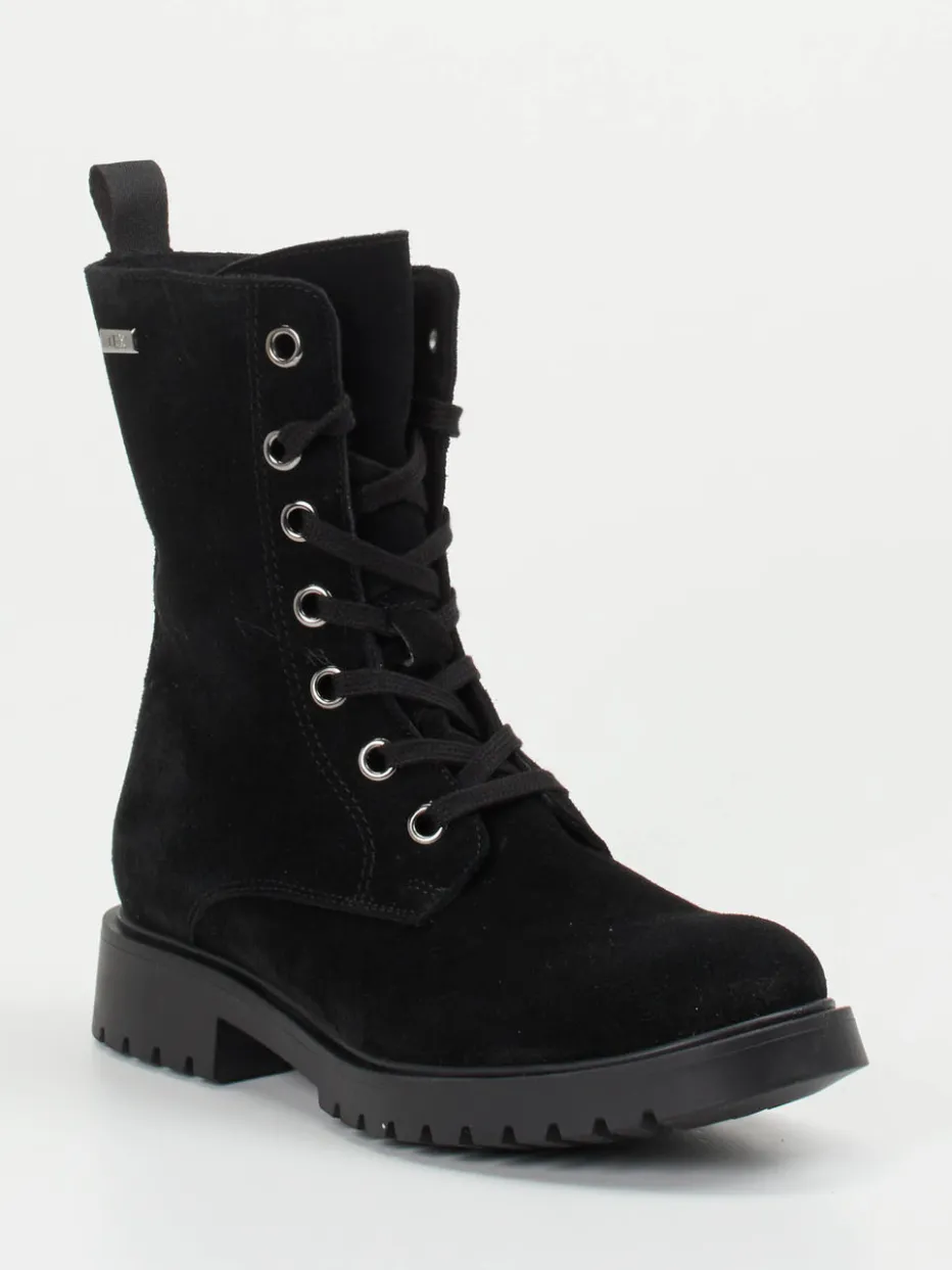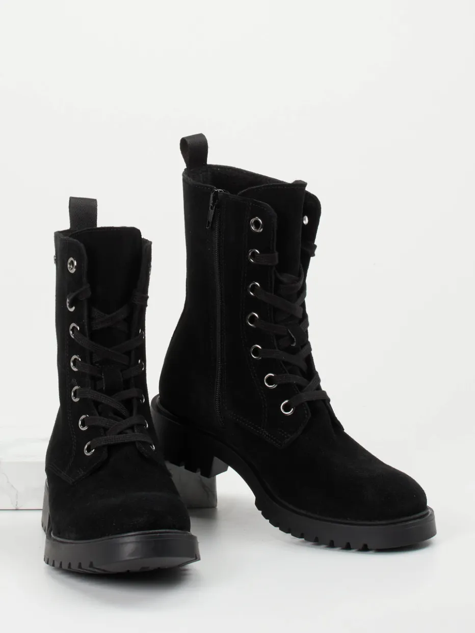 Diese Damenboots verbinden wetterfestes Veloursleder mit funktionalen Details wie Innenreißverschluss und robuster Profilsohle – ideal für Herbst und Winter.