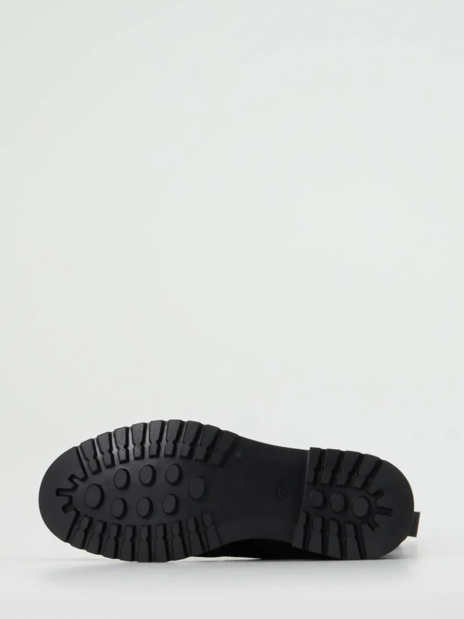 Funktionalität trifft urbanen Stil.Ralph Harrison Classic präsentiert wetterfeste Schnürboots für Damen. Für kühle, nasse Tage in der Stadt bieten diese schwarzen Boots aus samtig angeschliffenem Veloursleder zuverlässigen Schutz. Die matte Oberfläche, klassische Hochschaftform und das dezente Ton-in-Ton-Design mit Metallösen und Zuglasche sorgen für eine klar definierte Utility-Optik. Dank praktischer Kombination aus Schnürung und innenliegendem Reißverschluss gelingt das Anziehen bequem. Die rutschhemmende Profilgummisohle gewährleistet sicheren Halt – ob im Alltag oder auf herbstlichen Spazierwegen. Die Fleece-Innenfütterung schenkt dabei angenehme Wärme. Robustes Design mit alltagstauglichem Komfort – typisch Ralph Harrison.