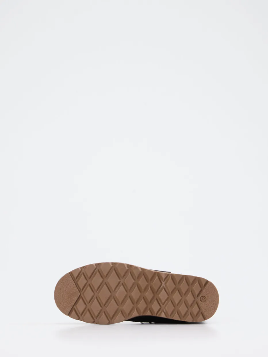 Stilvoll durch frostige Tage.Ralph Harrison Classic präsentiert einen Damen-Winterstiefel, der funktionale Details mit klarer Formsprache vereint. Für citytaugliche Spaziergänge oder winterliche Ausflüge bietet das Modell mit seiner Oberfläche aus samtig angeschliffenem Nubukleder in tiefem Schwarz maximale Kombinierbarkeit. Das warme Textilfutter mit Kunstfellstruktur isoliert zuverlässig, ein seitlicher Reißverschluss erleichtert den Einstieg. Die profilierte Gummisohle in Kontrast-Braun sorgt für sicheren Halt – auch auf glatten Untergründen. Die reduzierte Silhouette greift den Minimalismus-Trend auf und passt perfekt zum Stilbild „Quiet Luxury“. Ein funktional-ästhetischer Winterpartner mit markentypischer Verarbeitungsqualität.