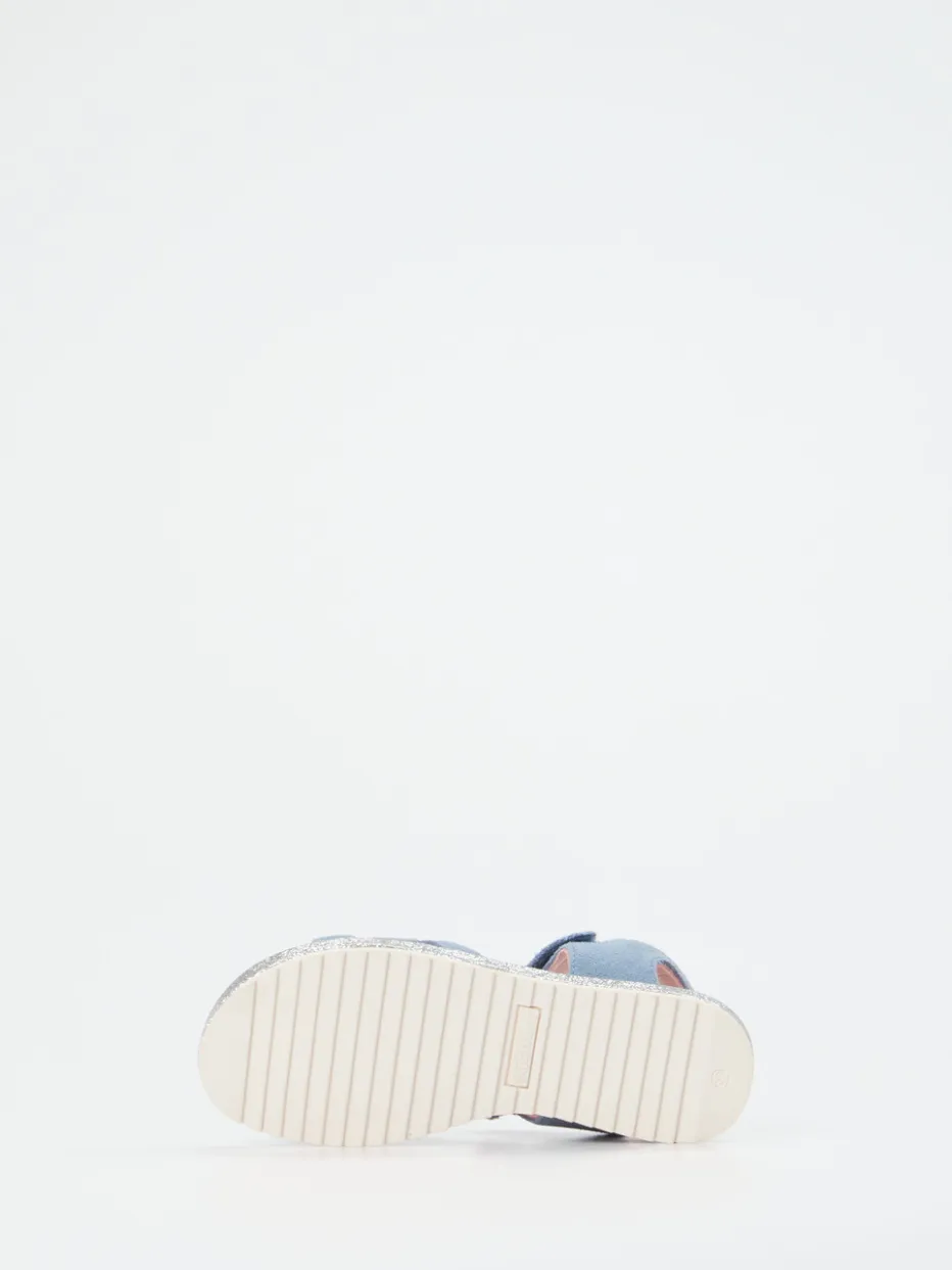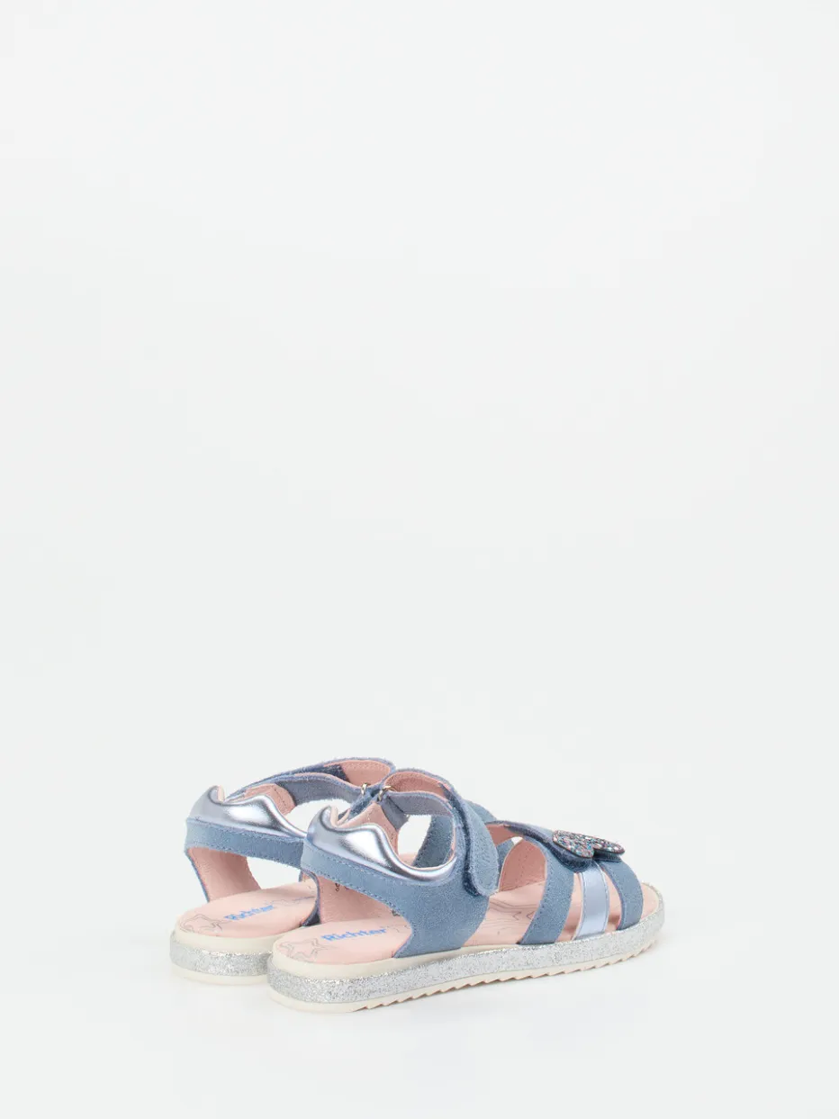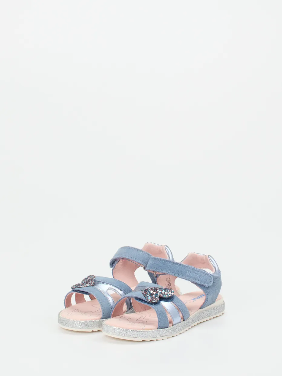 Hellblaues Veloursleder trifft auf glänzende Akzente und kindgerechten Komfort. Die Sandale vereint mühelos Alltagstauglichkeit mit detailverliebtem Design.