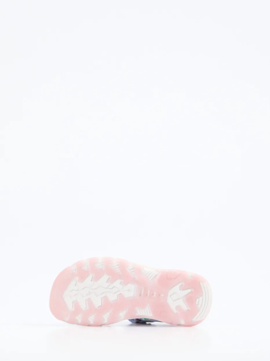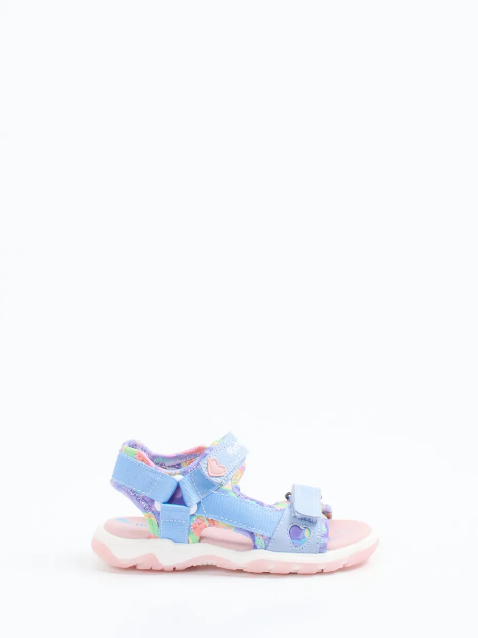 Die Outdoor-Sandale aus robustem Textil in sanftem Pastellblau kombiniert mädchenhafte Verspieltheit mit funktionalem Design. Herz-Applikationen, ein farbenfrohes Innenfutter sowie kontrastfarbige Nähte sorgen für einen charmanten Auftritt. Dank verstellbarer Klettverschlüsse und gepolsterter Innensohle ist ein sicherer und bequemer Sitz gewährleistet. Die rutschfeste Gummisohle unterstützt aktive Einsätze im Alltag oder Urlaub. Inspiriert vom Utility-Trend und Y2K-Comeback begeistert diese Sandale styleaffine Kids.