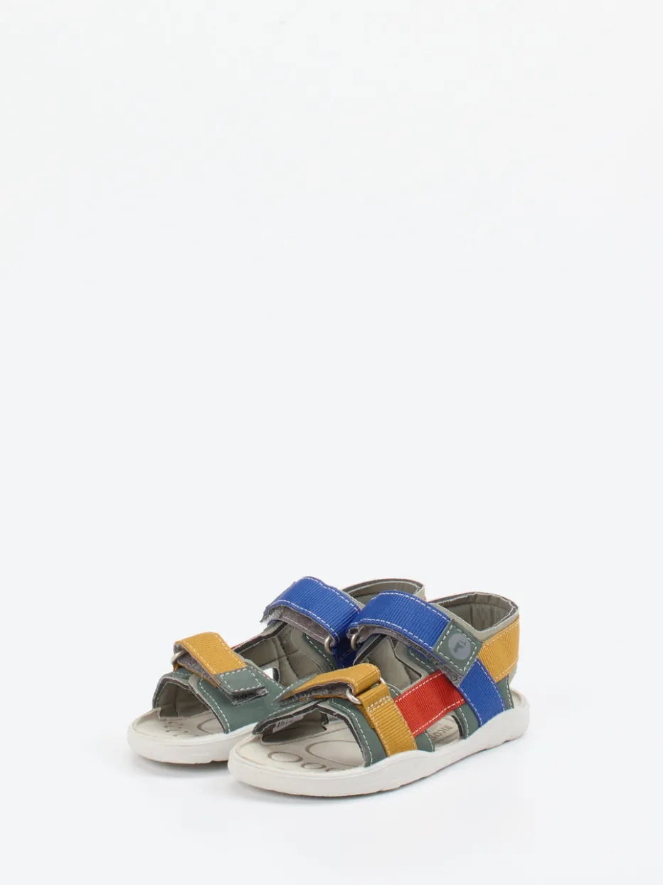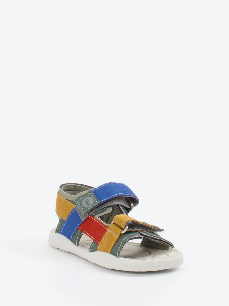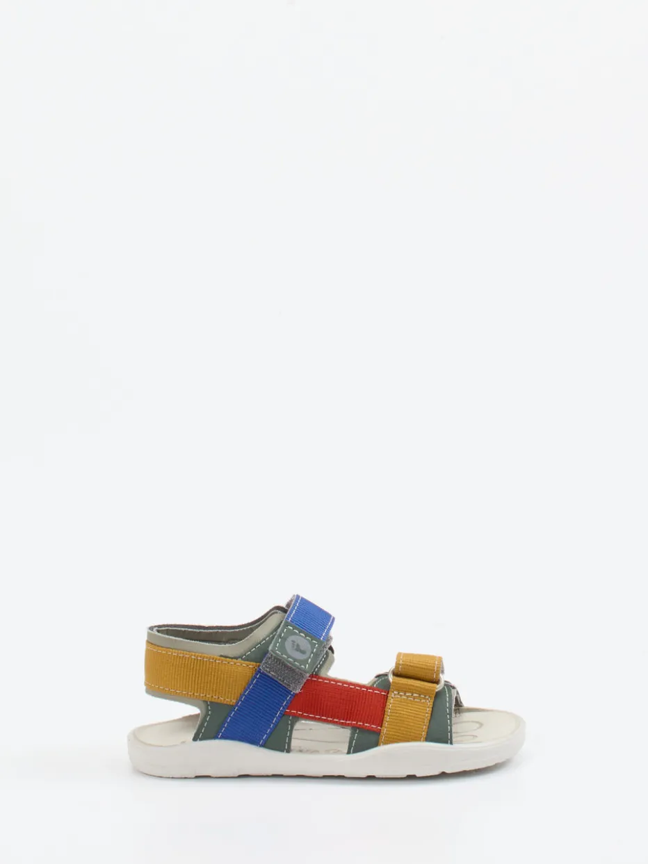 Praktisch bunt für kleine Abenteurer.Ricosta bringt mit dieser Kindersandale eine farbenfrohe Klettversion auf den Markt. Die offene, flache Silhouette mit gepolsterter Innensohle sorgt für bequeme Alltagsunterstützung – ob auf dem Spielplatz oder im Urlaub. Gefertigt aus robustem Synthetikmaterial mit matter Oberfläche überzeugt das Modell durch praktische Klettverschlüsse und ein dynamisches Color-Blocking in Khaki, Blau, Rot und Senfgelb. Die PU-Sohle mit starkem Grip ist ideal für Outdoor-Aktivitäten. Perfekt kombinierbar mit kurzen Hosen und leichter Mütze für sonnige Erkundungstouren. Markentypischer Mix aus Funktion und kindgerechtem Design.