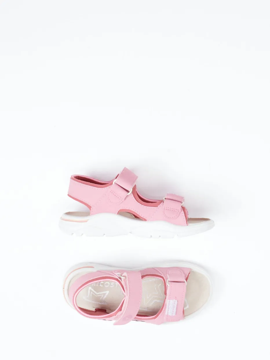 Die Marke Ricosta präsentiert in der Kategorie der Kindersandalen diese charmante Klettsandale aus Synthetik mit mattierter Oberfläche.