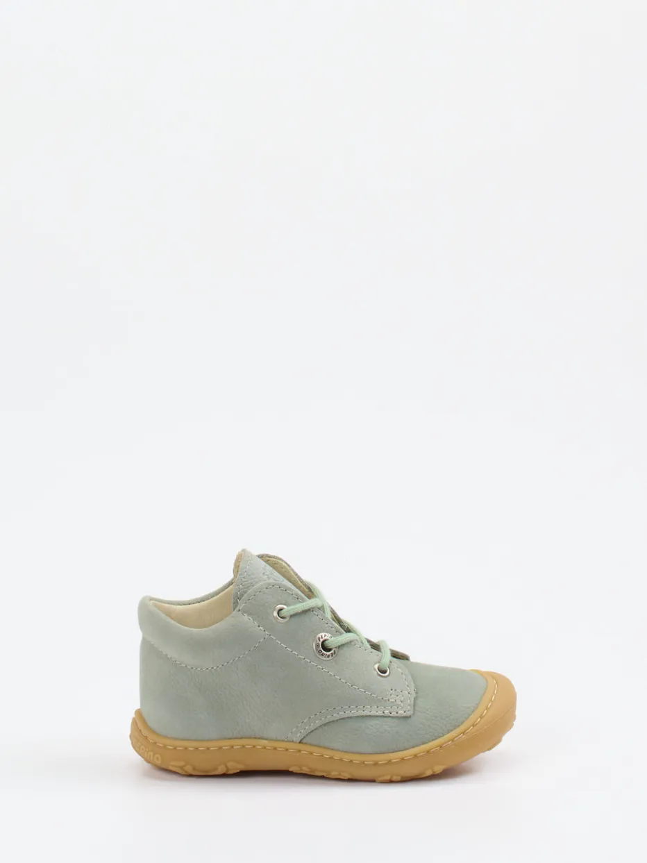 Weiches Leder für kleine Entdecker.Die Marke Ricosta präsentiert diesen hochwertigen Kinderschuh in der Kategorie Lauflernschuhe. Für sicheres Gehenlernen im Alltag sorgt das anschmiegsame Nubukleder, das samtig angeschliffen und weich genarbt ist. Die salbeigrüne Farbe unterstreicht den natürlichen Look, ergänzt von einer tonalen Schnürung und einem geprägten Logo auf der Zunge. Die profilierte Naturkautschuksohle bietet kindgerechten Grip und maximale Flexibilität. Ein gepolsterter Einstieg und das Lederfutter sichern Komfort im Haus und draußen. Das minimalistische Design folgt skandinavischen Impulsen und liegt im Soft-Neutrals-Trend. Ricosta steht für natürliche Materialien und durchdachte Ergonomie ab dem ersten Schritt.