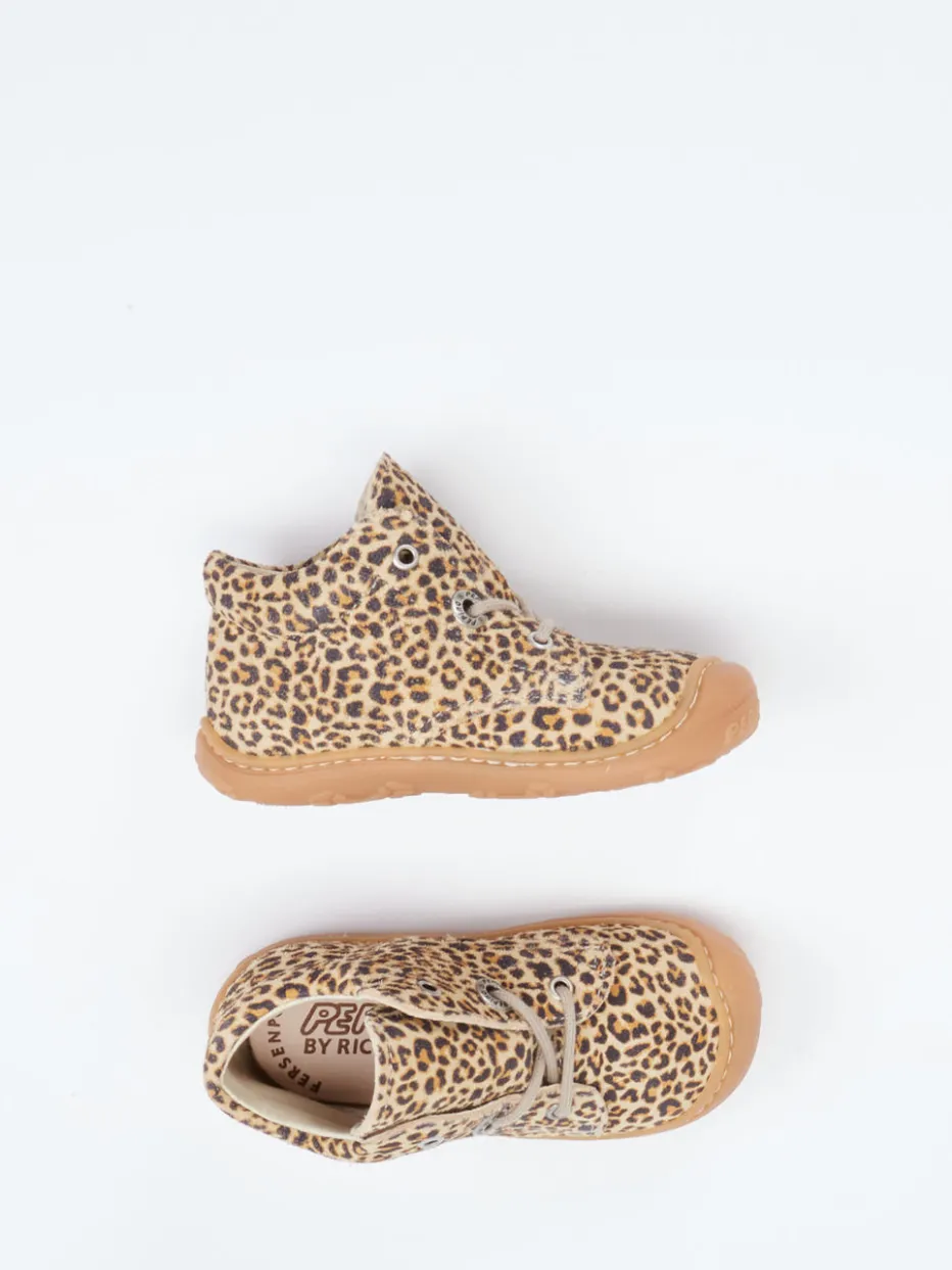 Safari-Style für kleine Abenteurer.Ricosta präsentiert robuste Lauflernschuhe für Kinder mit Liebe zum Detail. Ideal für erste Schritte im Alltag kombiniert dieses Modell geprägtes Leder mit genarbtem Finish und einem markanten Leopardenmuster in warmem Beigebraun. Die runde, knöchelhohe Silhouette mit asymmetrischer Schnürung stützt kleine Füße zuverlässig. Eine rutschhemmende Gummisohle sorgt für sicheren Tritt auf Spielplätzen und Gehwegen. Silberfarbene Ösen setzen dezente Akzente, während die retro-inspirierte Optik aktuellen Mini-Me-Trends entspricht. Perfekt kombinierbar zu Jeans oder Sweatpants. Kindgerecht designt mit bewährter Ricosta-Qualität für aktive Tage.