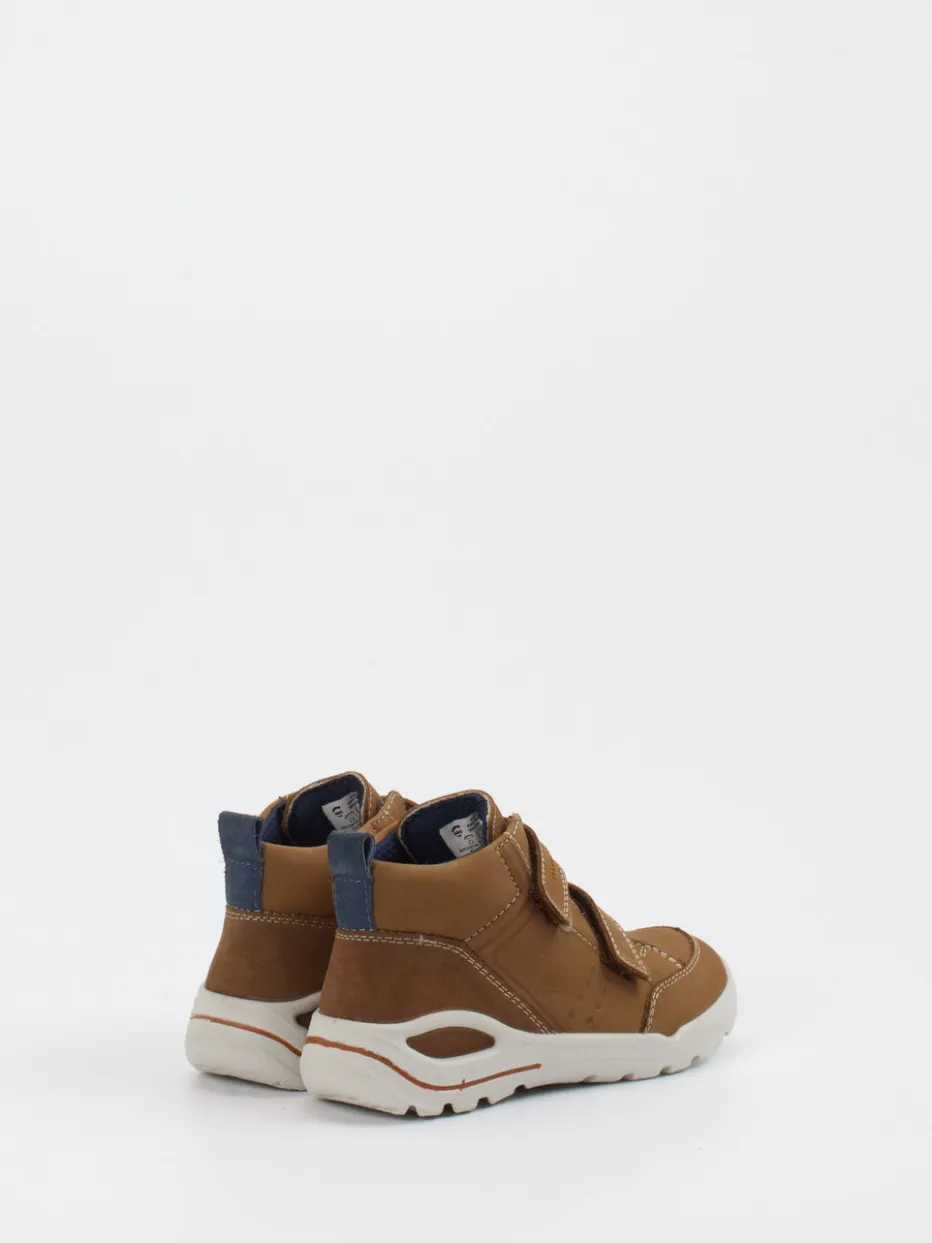 Für Alltag und Abenteuer draußen.Ricosta präsentiert einen komfortablen Kinderschuh der Kategorie Mid-Cut-Sneaker. Ideal für aktive Familienmomente: Das Modell aus Nubukleder, samtig angeschliffen, überzeugt durch seine robuste PU-Profilsohle und doppelte Klettverschlüsse. Die cognacbraune Oberfläche wirkt dank kontrastierender Nähte und dunkelblauer Details sportlich und zeitgemäß. Innen sorgt ein textiles Futter für angenehm weichen Komfort. Besonders praktisch: die Zuglasche für schnelles An- und Ausziehen. Der Look passt ideal zu Utility Kidswear oder Outdoor-Styles. Ein vielseitiger Begleiter, der Stabilität mit kindgerechter Funktionalität verbindet.