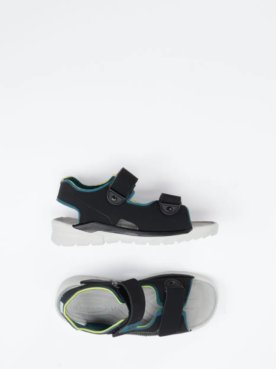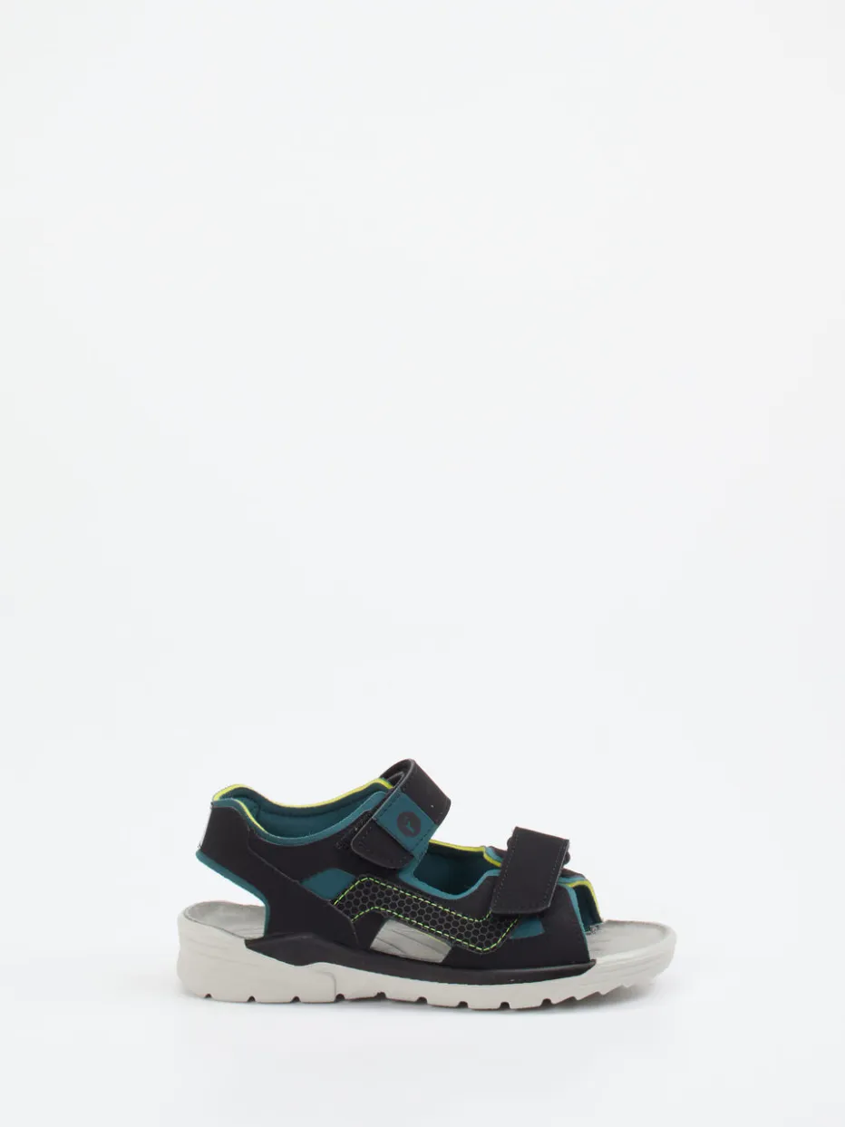 Für Sommerabenteuer gemacht.Ricosta zeigt mit dieser Outdoor-Sandale für Kinder eine clevere Verbindung aus Komfort und Alltagstauglichkeit. Auf dem Weg zur Strandbucht oder auf dem Spielplatz sorgt die rutschfeste PU-Profilsohle für standfesten Halt. Das robuste Synthetikmaterial wird durch eine matte Oberfläche und markante neonfarbene Ziernähte aufgewertet. Dank des gepolsterten Fersenbands und der doppelten Klettverschlüsse sitzt die offene Silhouette zuverlässig und bequem. Schwarz mit Applikationen in Petrol- und Hellgrau wirkt dynamisch und vielseitig kombinierbar. Reflektierende Details an der Ferse erhöhen die Sichtbarkeit – ein Extra an Sicherheit. Funktionalität und modernes Design – kindgerecht interpretiert von Ricosta.