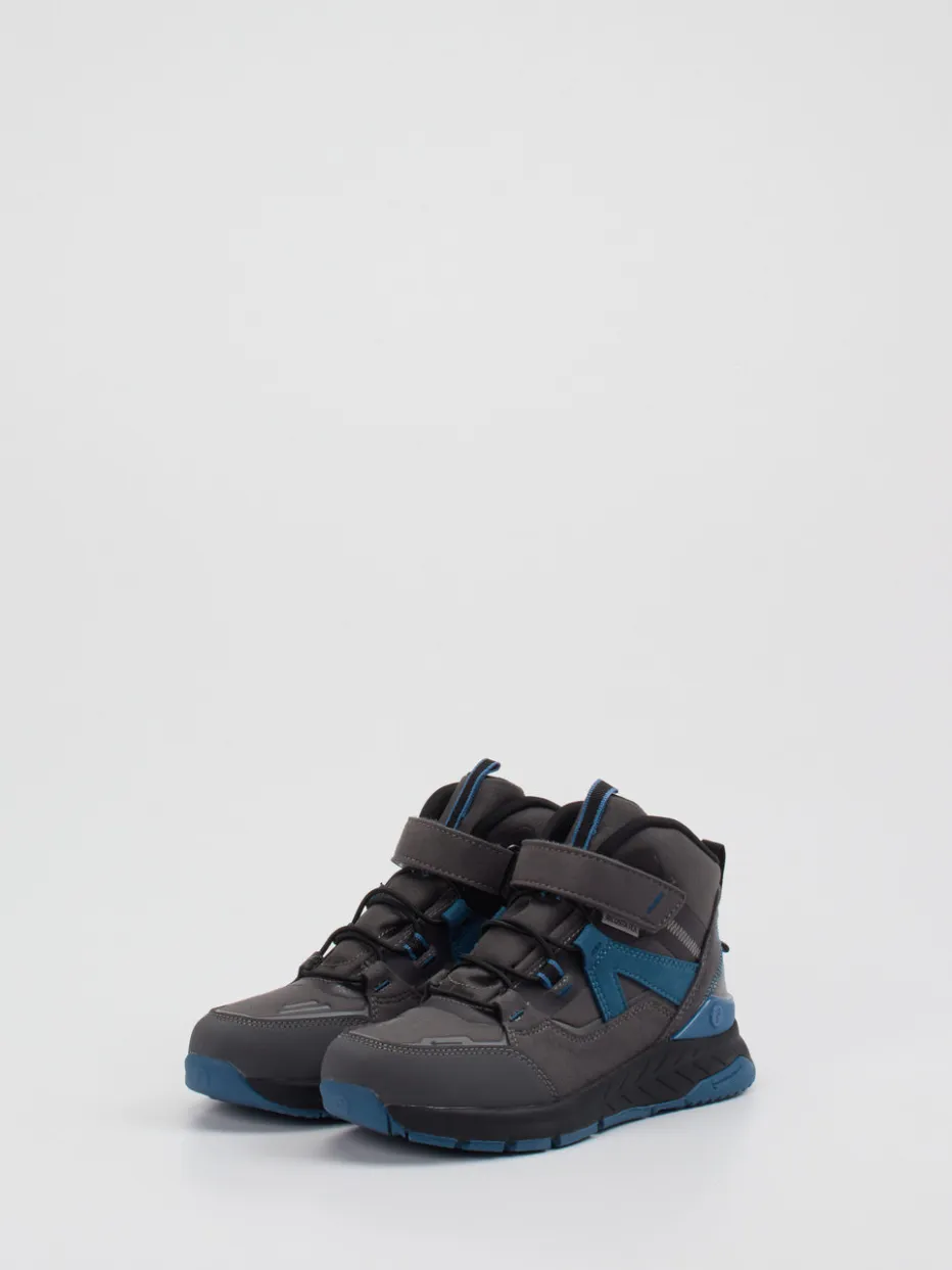 Der robuste Mid-Cut-Schuh kombiniert hochwertiges Veloursleder mit reflektierenden Elementen und einer griffigen Gummisohle – durchdacht für aktive Kinderfüße.