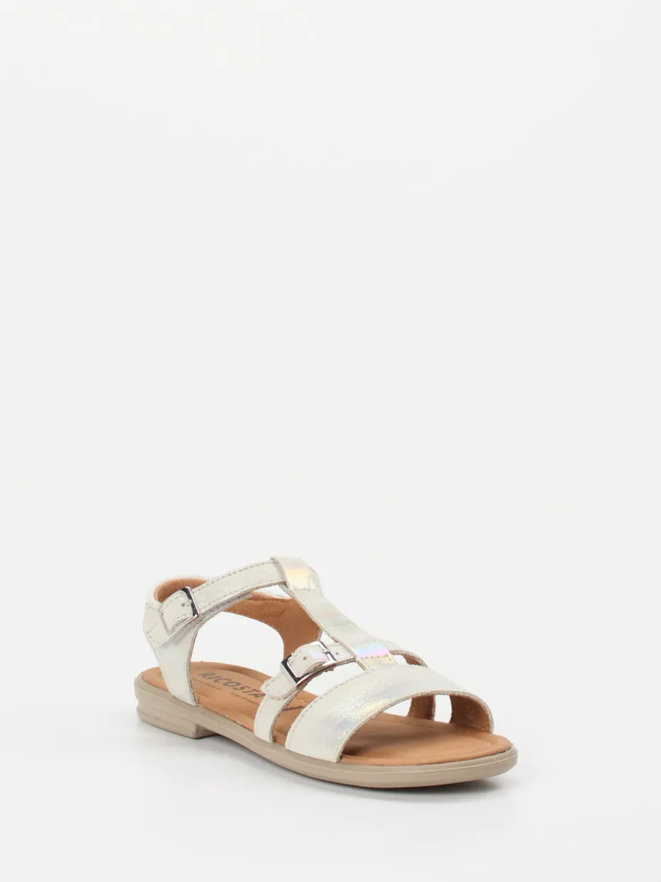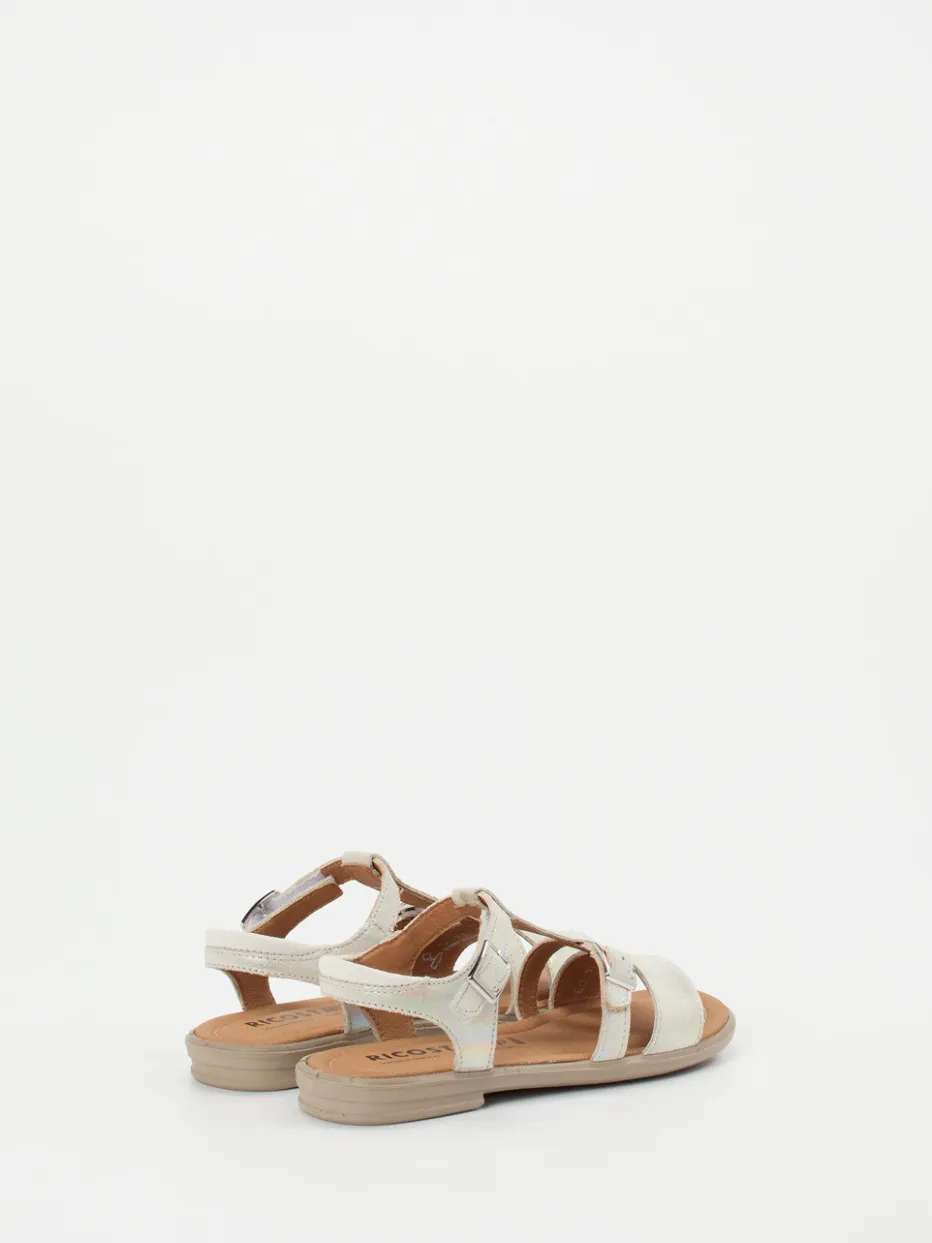 Glänzender Komfort für kleine Füße.Ricosta präsentiert eine sommerliche Riemchensandale für Mädchen, gefertigt aus hochwertigem Nubukleder mit irisierendem Finish. Für Spaziergänge auf dem Spielplatz oder an Urlaubstagen am Strand bietet die gepolsterte Mikrofaser-Innensohle angenehmen Komfort. Silberfarbenes Nubukleder mit leicht glänzender Oberfläche wird durch silberne Metallschnallen ergänzt – formschön und funktional zugleich. Die bequeme PU-Laufsohle ist besonders flexibel und unterstützt natürliches Gehen. Design und Farbwahl orientieren sich an „Quiet Luxury“ und der SS24-Trendfarbe Perlmutt. Passt stilvoll zu luftigen Sommerkleidern oder Shorts. Ein durchdachter Begleiter mit klarer Formsprache und kindgerechter Flexibilität.
