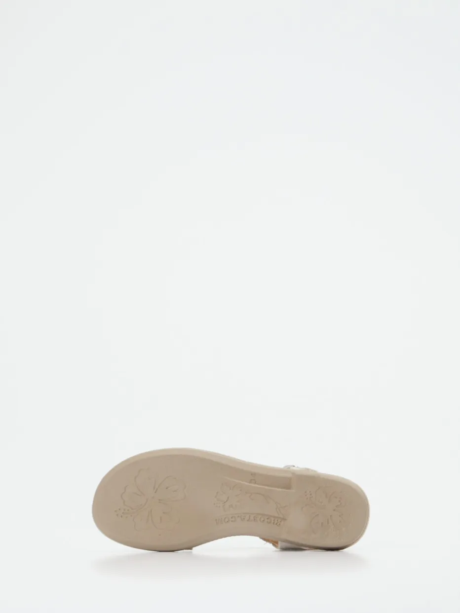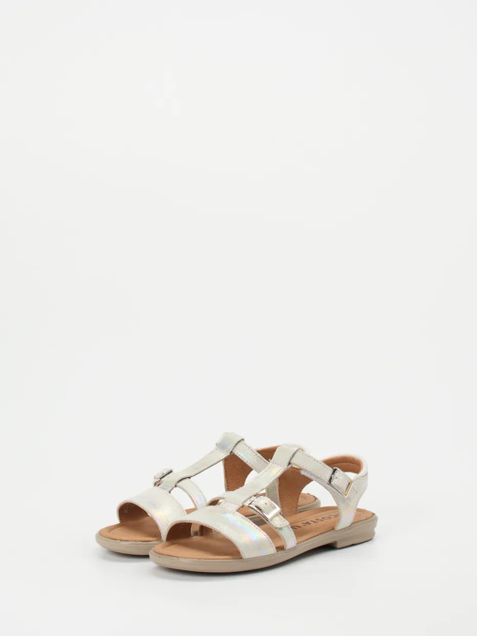Diese flache Kindersandale kombiniert schimmerndes Nubukleder mit funktionaler Anpassbarkeit und bietet dank weicher PU-Sohle idealen Tragekomfort für warme Tage.