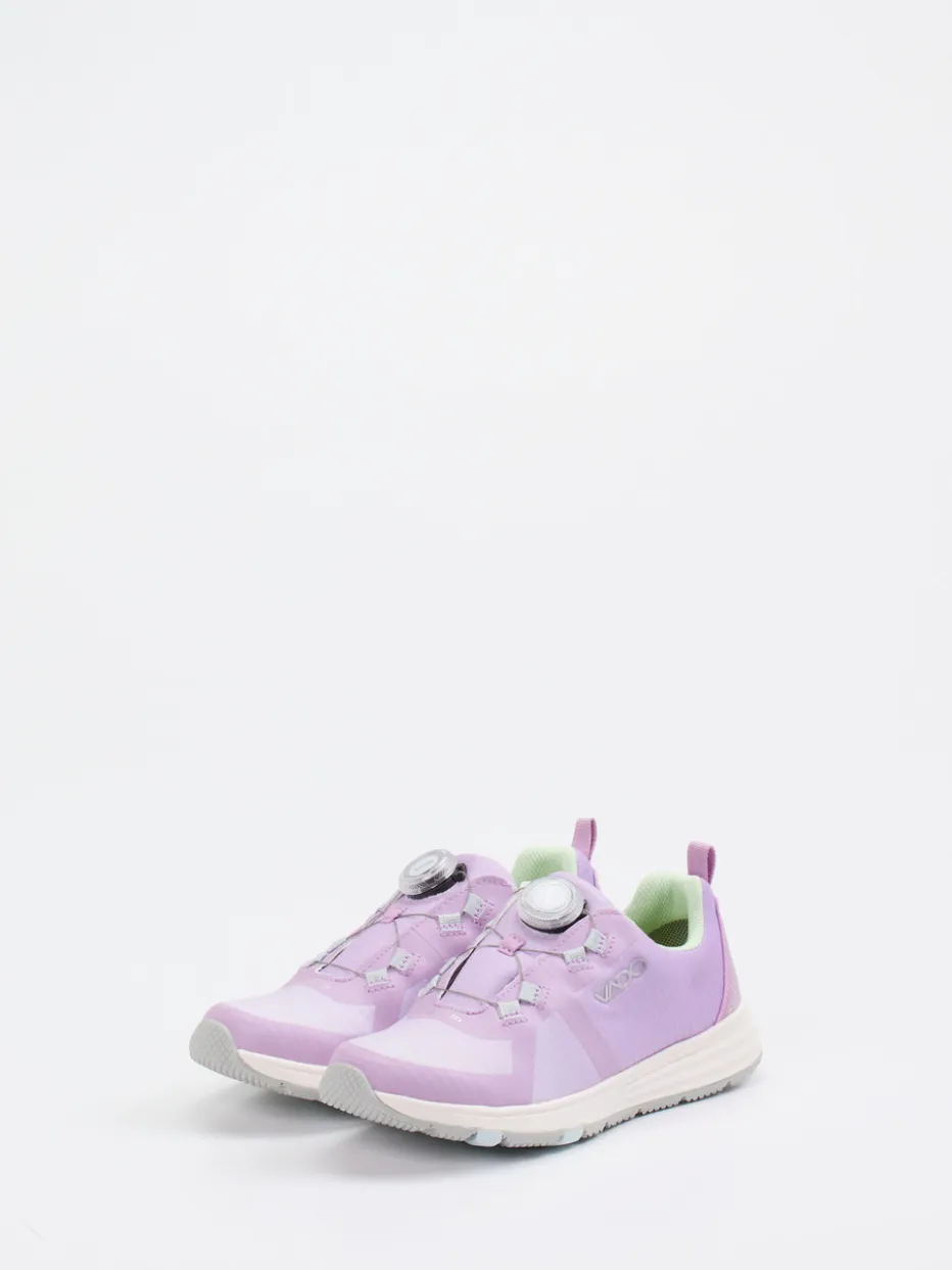 Technik trifft Leichtigkeit.Vado präsentiert mit diesem Kinder-Sneaker ein sportlich designtes Modell für Alltag und Freizeit. Ideal für bewegungsfreudige Tage kombiniert der Schuh leichtes Textil-Obermaterial mit atmungsaktivem Mesh – samtig matt und unterstützt durch robuste TPU-Verstärkungen. Flieder dominiert die zierliche Silhouette, Pastellgrün und Hellgrau setzen sanfte Akzente. Der reflektierende Fersenbereich erhöht die Sichtbarkeit. Dank innovativem Boa-Drehverschluss ist schnelles und individuelles Anpassen garantiert. Die profilierte Gummisohle bietet sicheren Halt. Ein dynamischer Begleiter mit funktionalem Mehrwert – typisch Vado Kidswear.