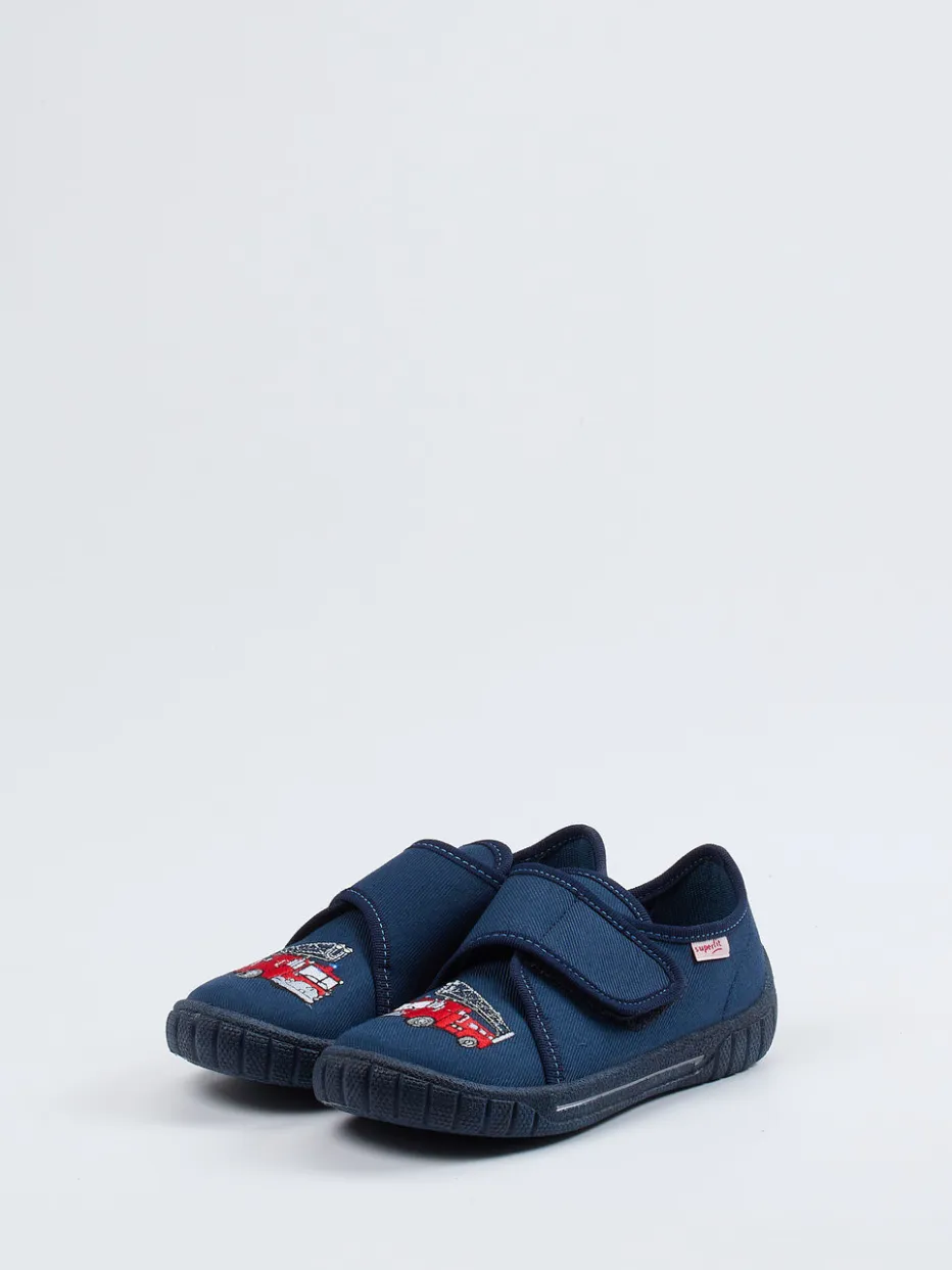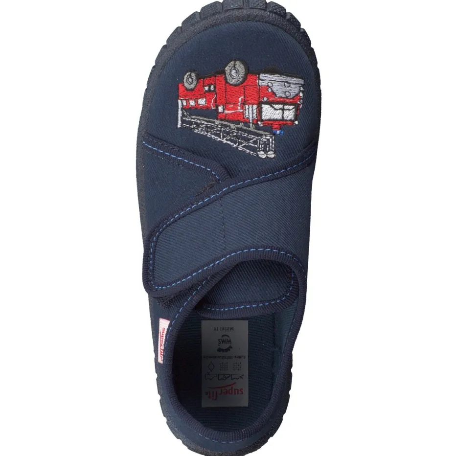 Komfort und Spielspaß für drinnen.Superfit bietet mit diesem Kinder-Hausschuh einen idealen Begleiter für den Alltag zu Hause. Ob beim Spielen im Kinderzimmer oder auf dem Weg zur Kita – der dunkelblaue Hausschuh schafft sicheren Halt dank flexibler PU-Sohle mit Sternenprofil. Das textile Obermaterial wirkt matt strukturiert und wird durch eine auffällige Stickerei mit Feuerwehrmotiv belebt. Der Klettverschluss erleichtert das selbstständige An- und Ausziehen, während eine verstärkte Gummikappe zusätzlichen Schutz garantiert. Ton-in-Ton-Nähte runden das visuelle Gesamtbild dezent ab. Ideal kombinierbar mit Pyjamas oder Strickleggings. Superfit bietet kindgerechten Komfort mit funktionalem Designverständnis.