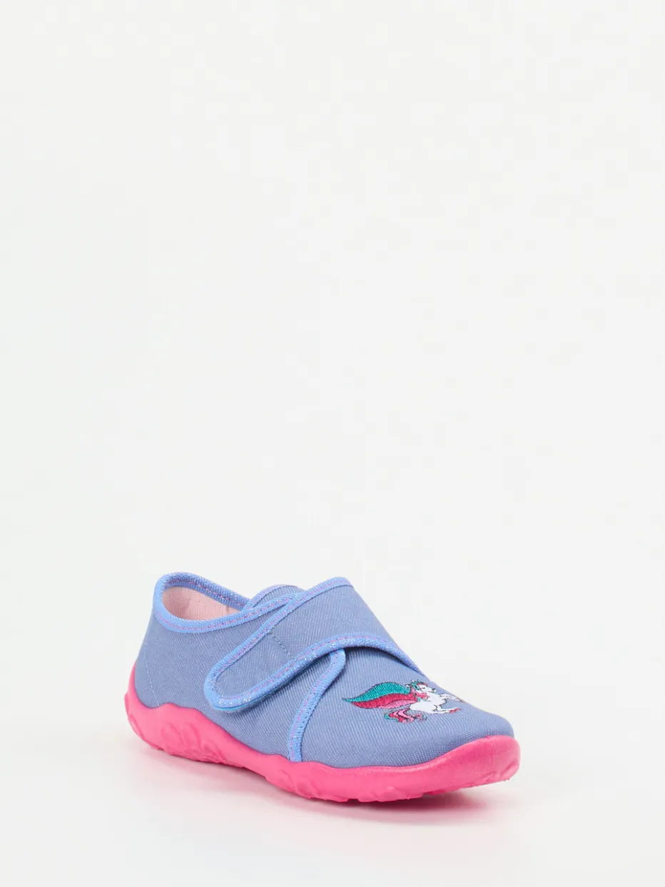 Mit Einhorn-Power durch den Alltag.Der Kinderhausschuh von Superfit überzeugt als leichter Kletthausschuh für drinnen. Weiches Textilmaterial sorgt für ein angenehmes Tragegefühl, während die lavendelblaue Farbgebung und die aufwendig bestickte Einhorn-Applikation auf dem Spann für kindliche Begeisterung sorgen. Der breite Klettverschluss erleichtert das An- und Ausziehen. Die griffige, pinkfarbene Gummisohle mit floraler Prägung schützt kleine Füße zuverlässig und ist dabei angenehm flexibel. Pastellfarbtöne und Kindermotive treffen hier auf funktionalen Komfort – ideal für Freizeit, Zuhause oder Kindertagesstätte. Kombiniert mit passenden Kinderpyjamas entsteht ein verspielter Relax-Look. Superfit bietet hier stilvolle Bequemlichkeit mit liebevollen Details für kleine Abenteurerinnen.