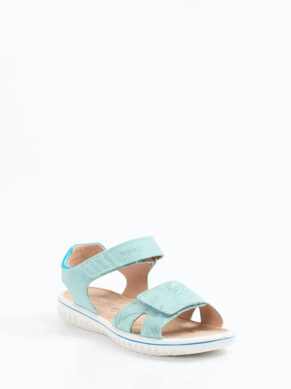 Sommerleicht in Farbe und Komfort.Superfit präsentiert hier eine Kindersandale mit funktioneller Klettverschlusstechnik und bequemem Sitz. Ideal für Bewegungsfreude an warmen Tagen bietet das Modell dank geprägtem Leder in matter Ausführung eine einzigartige Haptik. Der mintgrüne Farbton mit himmelblauen Akzenten setzt frische Akzente, unterstützt von einer offengehaltenen, ergonomisch gestalteten Silhouette. Der gepolsterte Fersenbereich und die flexible PU-Sohle mit rutschhemmendem Profil sorgen für sicheren Halt – ob unterwegs im Urlaub oder beim Spielen im Alltag. Stilistisch inspiriert vom skandinavischen Komfort passt sie zu luftigen Shorts und leichten Sommerjacken. Rutschfest und leicht – ein Superfit-Original mit Alltagstauglichkeit und Trendbewusstsein.