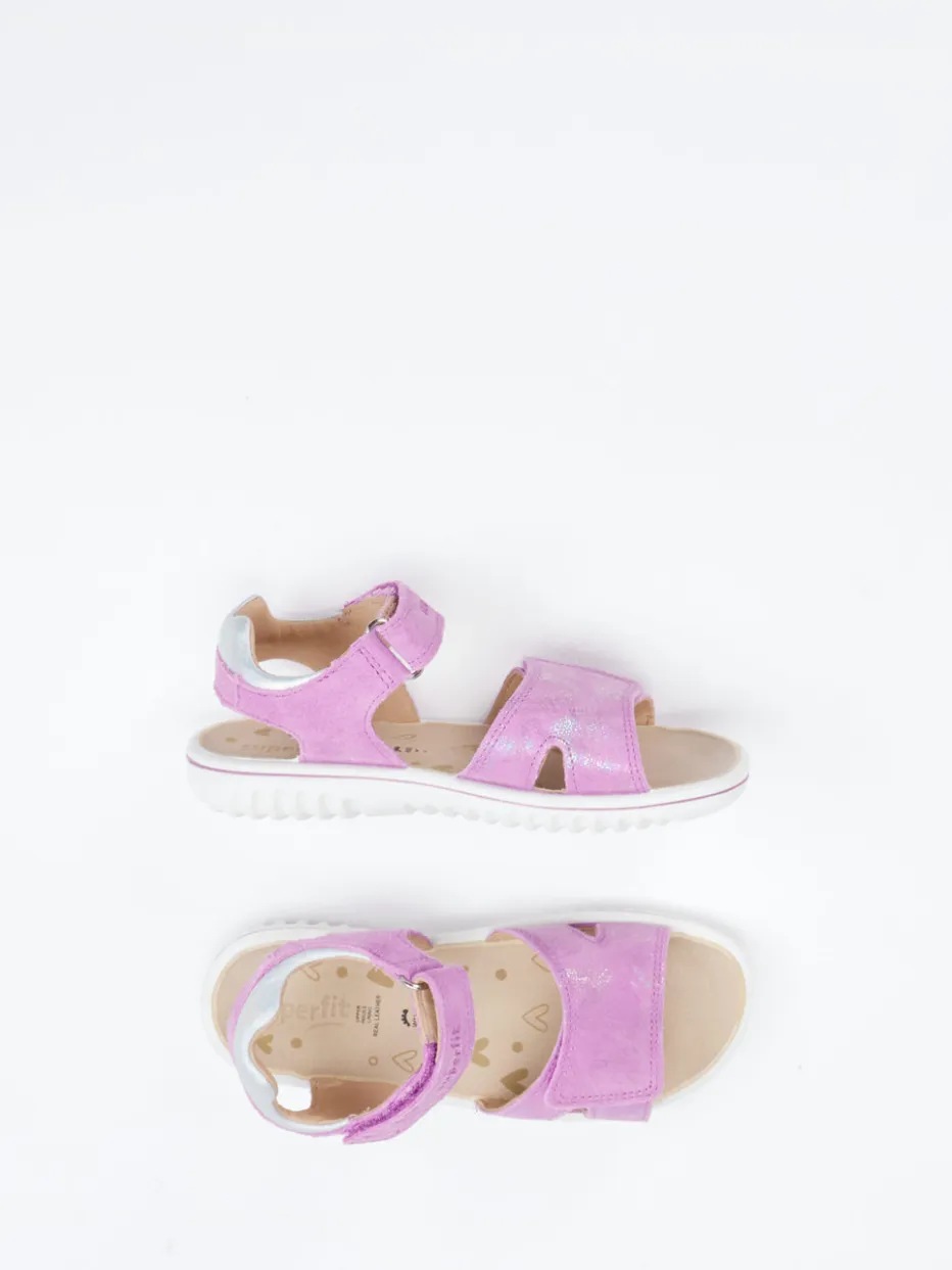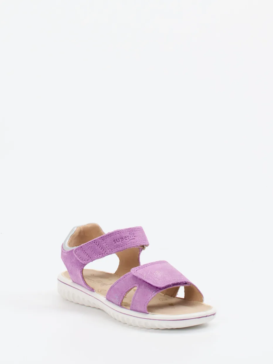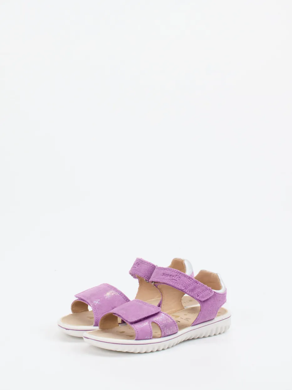 Sommerleichtes Laufvergnügen für Kinderfüße.Superfit präsentiert eine liebevoll gestaltete Kinder-Klettsandale in fliederfarbenem Veloursleder. Für spielerische Tage im Freien sorgt das samtig geprägte Obermaterial mit Glitzereffekt in Kombination mit einem weichen Lederfutter und gepolstertem Fußbett. Der doppelte Klettverschluss erlaubt ein einfaches Anpassen, während die leichte PU-Sohle mit griffigem Zackenprofil sicheren Halt bietet. Ein reflektierender Fersenbesatz erhöht die Sichtbarkeit, das ergonomische Design unterstützt den Fuß optimal. Pastellfarben und die offene Silhouette treffen den Ton der Saison. Superfit steht für funktionales Design mit komfortorientiertem Anspruch – perfekt für kleine Entdeckerinnen.