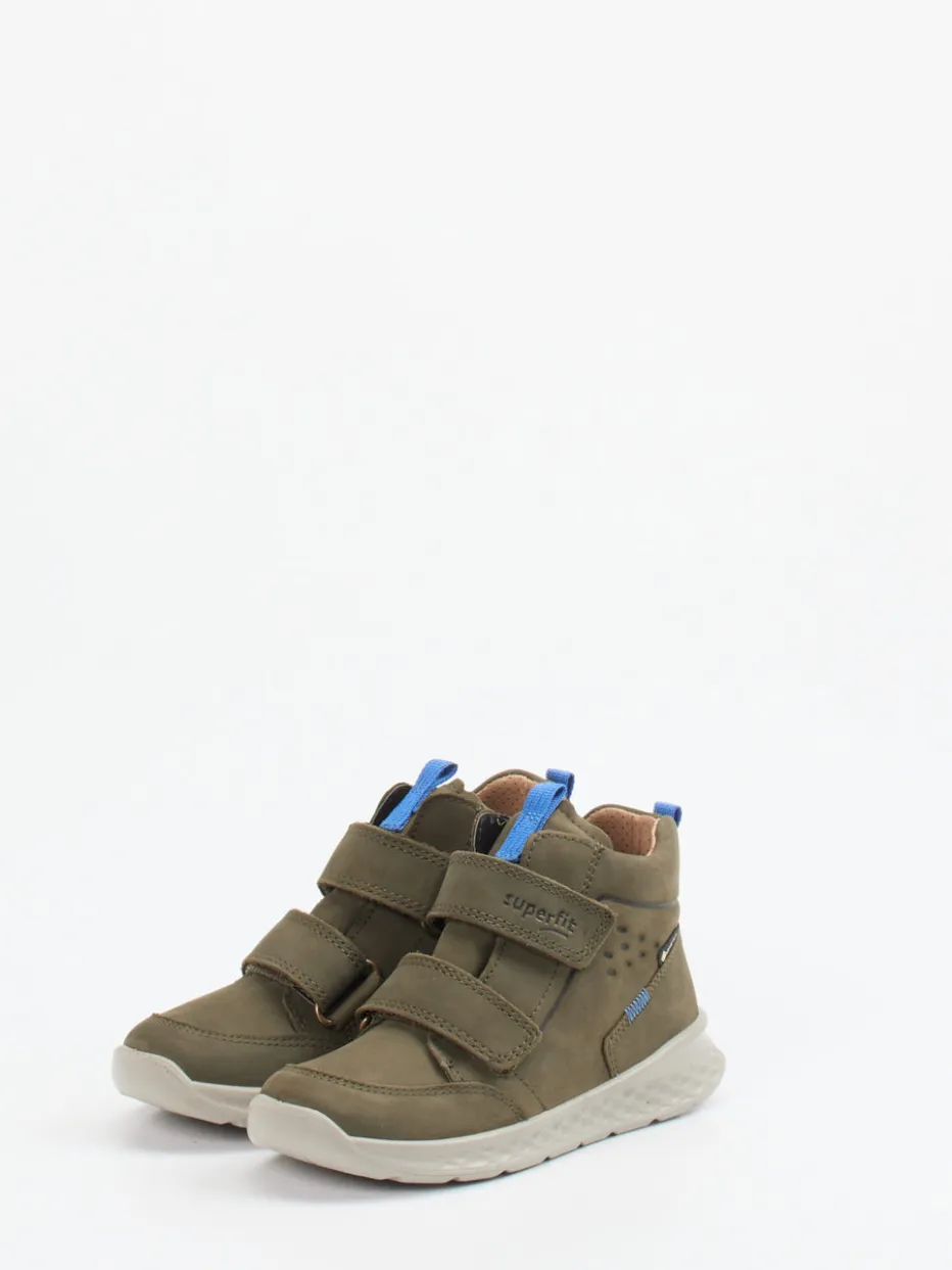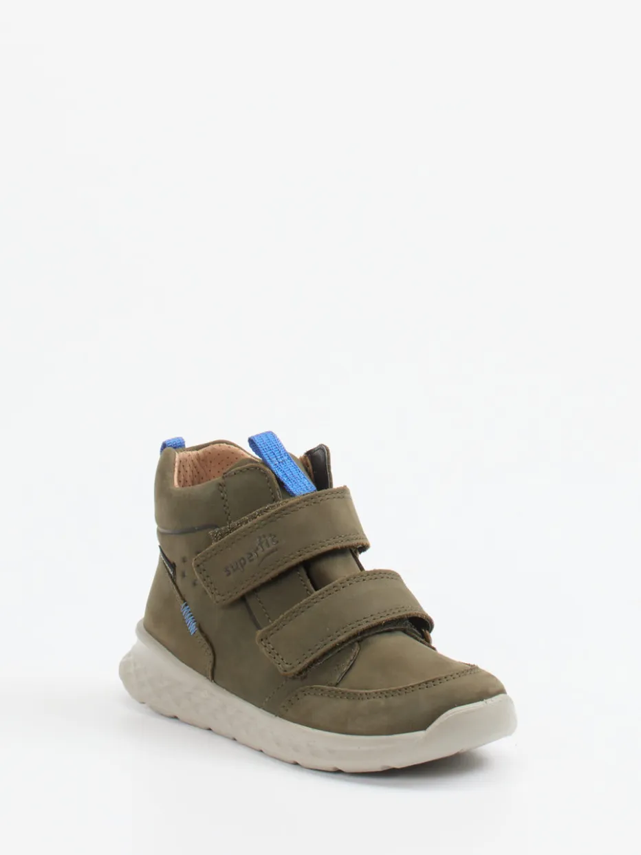 Bereit für Wind und Wetter.Superfit präsentiert einen hochwertigen Mid-Cut Sneaker für Kinder. Ideal für Abenteuer in der Natur oder aktive Tage auf dem Spielplatz: Dieser knöchelhohe Sneaker aus grünem Nubukleder zeigt sich samtig angeschliffen und mit wasserdichter GORE-TEX-Ausstattung. Der doppelte Klettverschluss sorgt für einfaches An- und Ausziehen; blaue Details und Kontrastnähte setzen sportliche Akzente auf der matten Oberfläche. Die rutschfeste PU-Profilsohle unterstützt sicheres Laufen bei jedem Wetter. Inspiriert von aktuellen Streetwear- und Outdoor-Trends passt er perfekt zu wetterfester Kinderkleidung. Komfort und Schutz vereint – für kindgerechte Mobilität bei jedem Wetter.