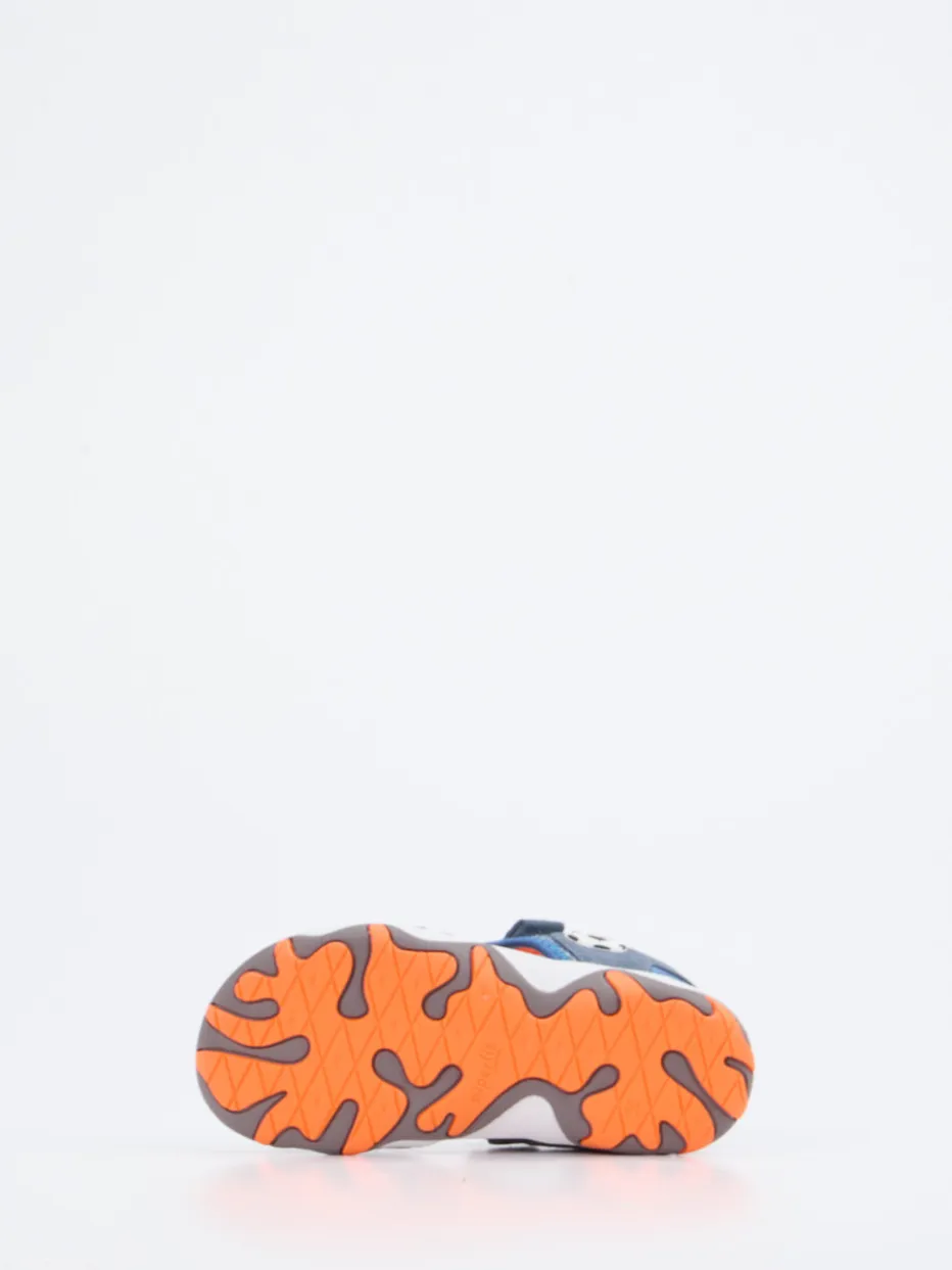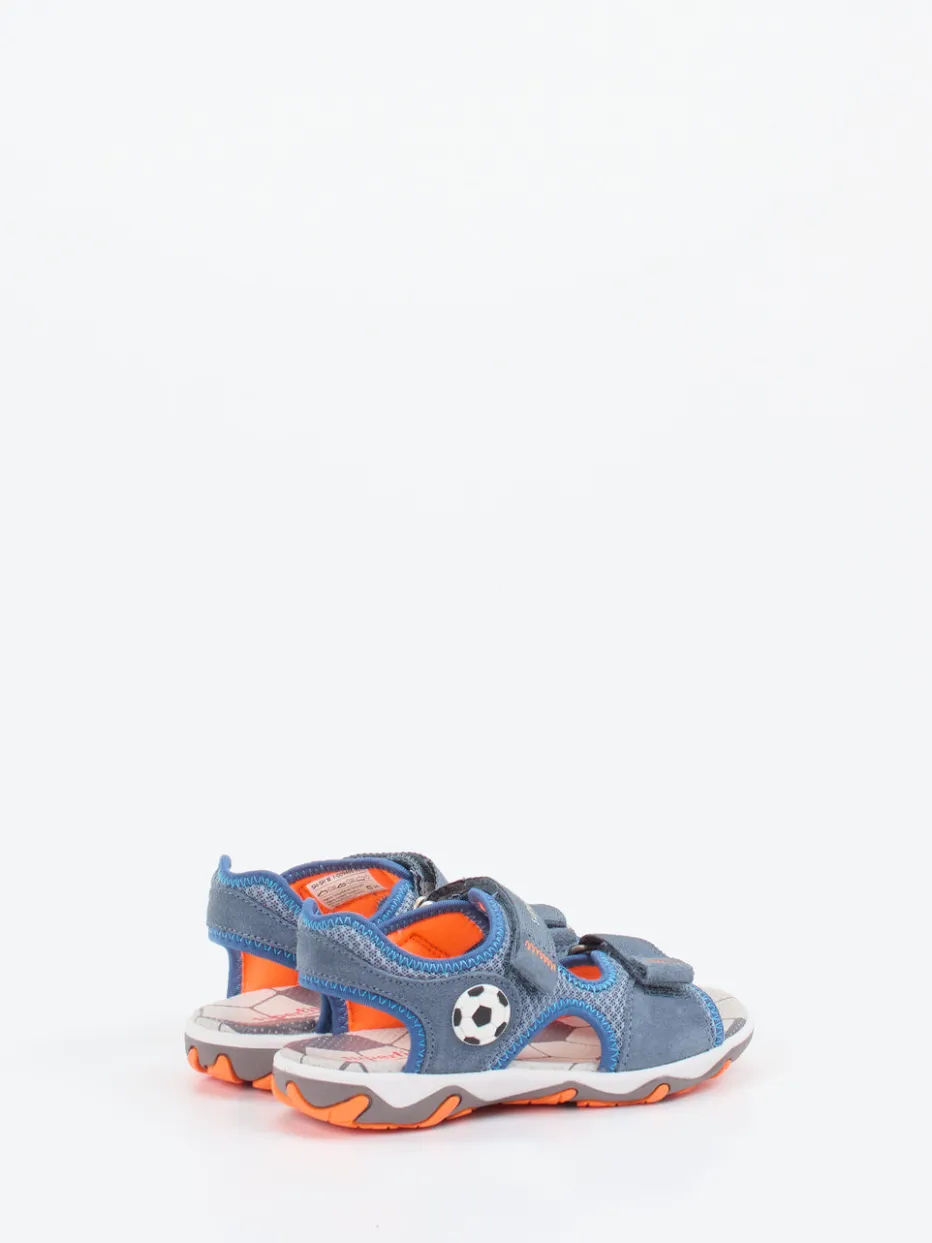 Sportlicher Komfort für kleine Abenteuer.Die Marke Superfit präsentiert eine funktionale Kinder-Outdoor-Sandale. Ob Spielplatz, Wanderpfad oder Stadtpark – diese Sandale bietet sicheren Halt und angenehme Belüftung. Sie besteht aus robustem Veloursleder, ergänzt um atmungsaktives Textil-Mesh mit fein genarbter Oberfläche. Die Farbkombination aus Jeansblau, Orange und Hellgrau wird von markanten Kontrastnähten und einem Fußball-Motiv aufgelockert. Dank gepolsterter Innenführung und dreifachem Klettverschluss trägt sich das offene, ergonomische Design besonders bequem. Die rutschfeste Gummisohle rundet den sportlich-trendigen Look ab. Kombinierbar mit Shorts und Cap für einen aktiven Sommerstil. Verlässliche Qualität mit kindgerechter Funktionalität – von Superfit.