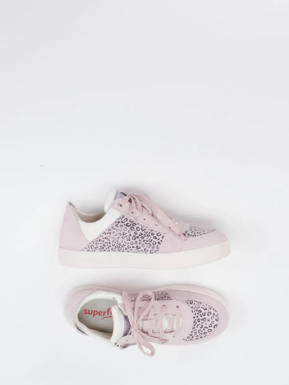 Pastell trifft auf Tierprint. Superfit präsentiert mit diesem Kinder-Sneaker ein modisches Highlight für den Alltag. Ideal für aktive Tage im Kindergarten oder beim Stadtbummel: Der Sneaker aus weichem Veloursleder bietet durch seine Kombination aus Schnürung und Reißverschluss besonders leichtes An- und Ausziehen. Zartes Rosé trifft auf angesagten Leoprint, ergänzt durch silberfarbene Details sowie eine markante Stern-Applikation an der Seite. Die klassische, rund geformte Silhouette und die flexible PU-Sohle sorgen für ein angenehmes Tragegefühl. Inspiriert von Streetwear-Trends liegt der Look voll im modischen Zeitgeist. Ein stilbewusster Freizeitschuh mit liebevollen Designelementen für modisch-expressive Kids.