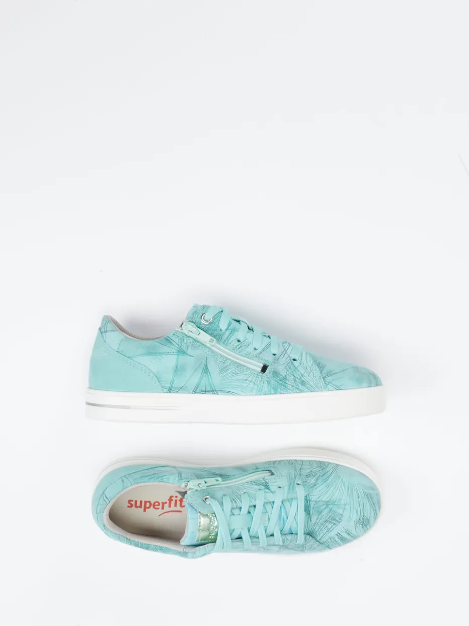 Botanisches Design trifft Alltagstauglichkeit.Superfit präsentiert einen Kinder-Sneaker, der Tragekomfort mit Trendgespür vereint. Ideal für aktive Frühlingstage begeistert das Modell durch mintgrünes Veloursleder mit samtig-matter Oberfläche und einen federleichten botanischen Print. Die harmonisch eingebundene Schnürung wird von einem seitlichen Reißverschluss ergänzt – für schnelles Anziehen im Alltag. Die flexible weiße PU-Sohle sowie das weich gepolsterte Textilfutter mit herausnehmbarem Lederfußbett sorgen für ein angenehmes Laufgefühl. Eyecatcher wie das silberne Logo an der Lasche veredeln das Design. Perfekt zu hellen Sommerhosen und pastellfarbenen Oberteilen. Bietet kindgerechte Funktion und modische Leichtigkeit mit Superfit-Qualität.