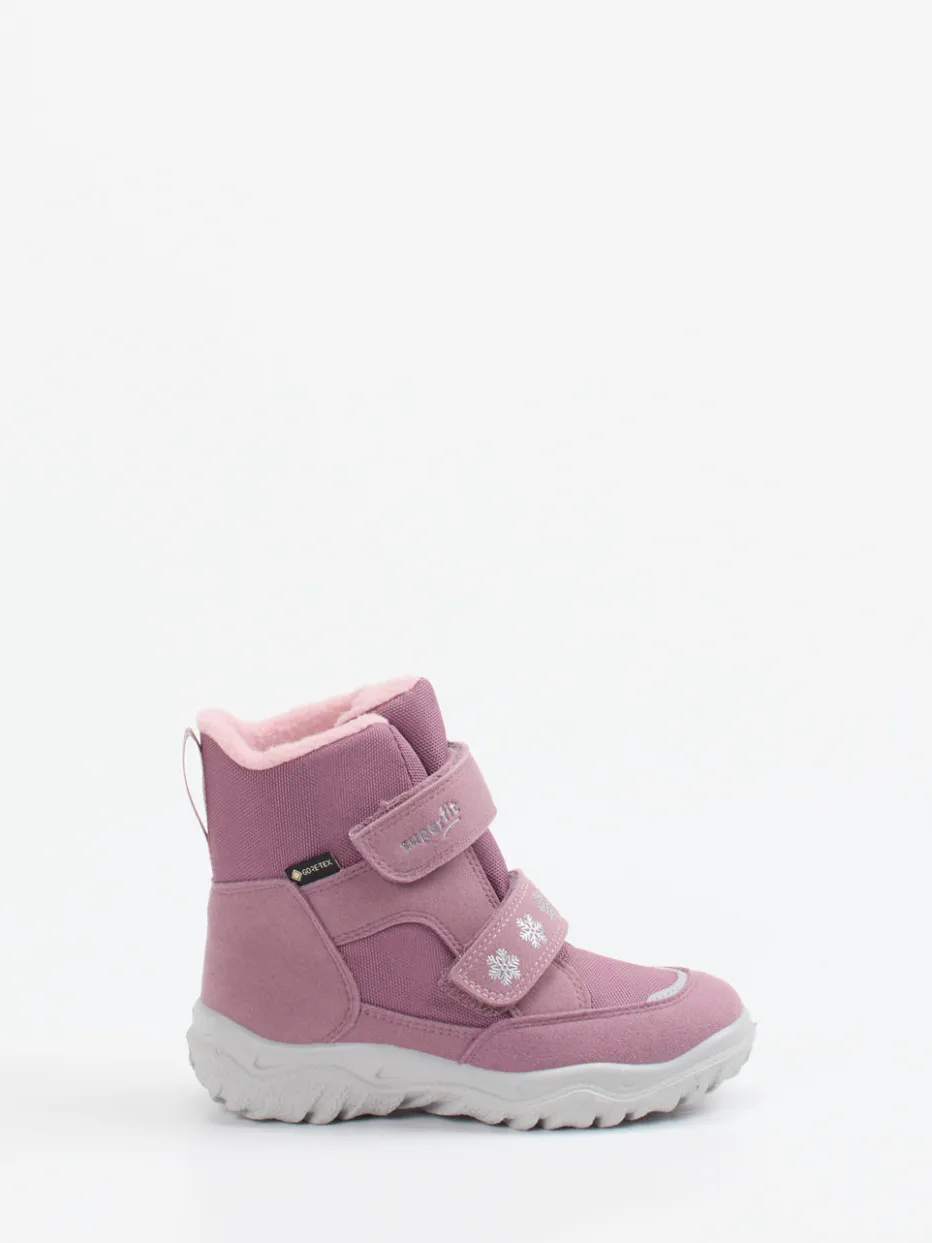 Bequem durch frostige Wintertage.Superfit bietet mit diesen Winterboots für Kinder ein funktionales Modell für Alltag und Outdoor-Abenteuer. Ideal für kalte, nasse Tage: Das robuste Synthetik-Obermaterial kombiniert mit samtigem Veloursleder-Imitat schützt dank GORE-TEX-Membran zuverlässig vor Nässe. Optisch überzeugt das Modell in zartem Altrosa mit reflektierenden Akzenten und winterlichem Schneeflockenprint. Das Innenfutter aus warmer Textilfaser sorgt für angenehme Wärme; zwei breite Klettverschlüsse ermöglichen einen schnellen Einstieg. Die rutschfeste PU-Profilsohle bietet sicheren Halt auf winterlichen Wegen. Ein alltagstauglicher Begleiter mit hohem Tragekomfort und wetterfester Ausstattung – funktional, kindgerecht, stilvoll.