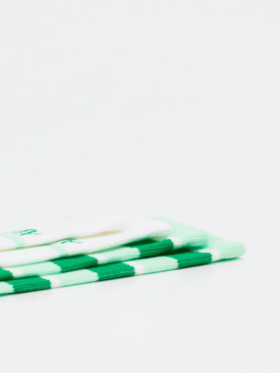 Mit ihren optimalen Stretch-Eigenschaften und hoher Strapazierfähigkeit wissen diese Socken für Kinder aus dem Hause Tommy Hilfiger zu überzeugen. Während das eine der zwei Paare in einem verspielten Ringelmuster daherkommt, setzt das andere auf den angesagten Tennissocken-Look, der sich zu jedem Outfit problemlos kombinieren lässt. Beiden gemein ist die Verwendung frühlingshaft frischer Grüntöne und natürlich des ikonischen Markenlogos. – Größe: 31-34 – Material: 63% Baumwolle, 34% Polyamid, 3% Elasthan