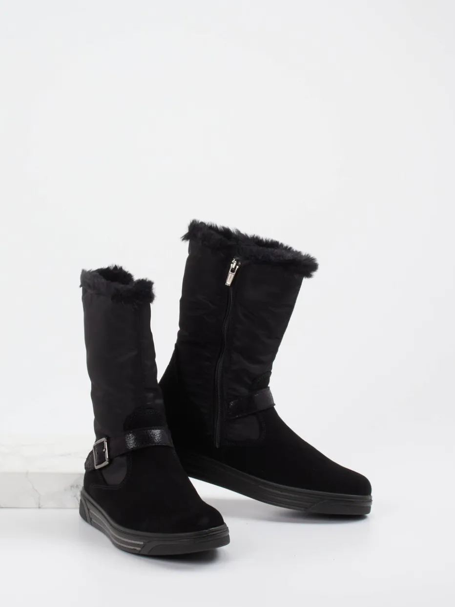 Wärme trifft Alltagstauglichkeit.Primigi präsentiert diesen funktionalen Winterstiefel für Kinder. Ob für den Schulweg oder ein Winterabenteuer im Freien – das Modell ist die perfekte Wahl für kalte Tage. Gefertigt aus samtig angeschliffenem Veloursleder, ergänzt durch textile Elemente und ein wärmendes Kunstfellfutter, bietet der schwarze Stiefel ein angenehm weiches Tragegefühl. Die gerade Silhouette mit mittelhohem Schaft, eine glänzende Zierschnalle sowie der praktische Reißverschluss runden das schlichte Design ab. Die profilierte Gummisohle gewährleistet sicheren Halt auf glatten Untergründen. Minimalistische Linienführung und gorpcore-inspirierte Funktionalität machen ihn zum stilvollen Begleiter. Zuverlässige Primigi-Qualität für kompromisslosen Winterkomfort.