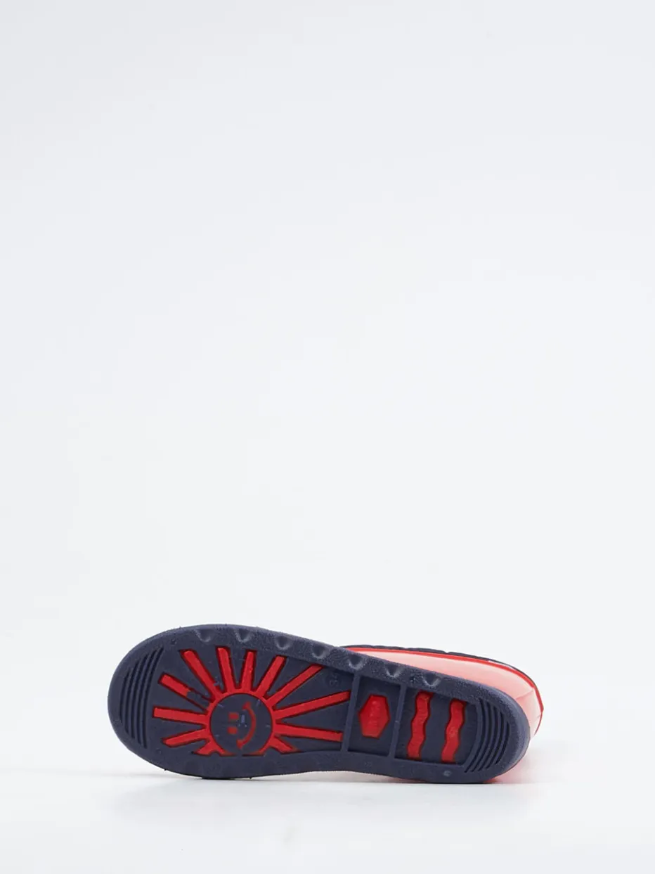 Der leuchtend rote Stiefel kombiniert robustes, phthalatfreies PVC mit rutschhemmender Sohle. Durch den elastischen Textilabschluss sitzt er sicher und bequem – ideal für aktive Abenteuer bei Regen.