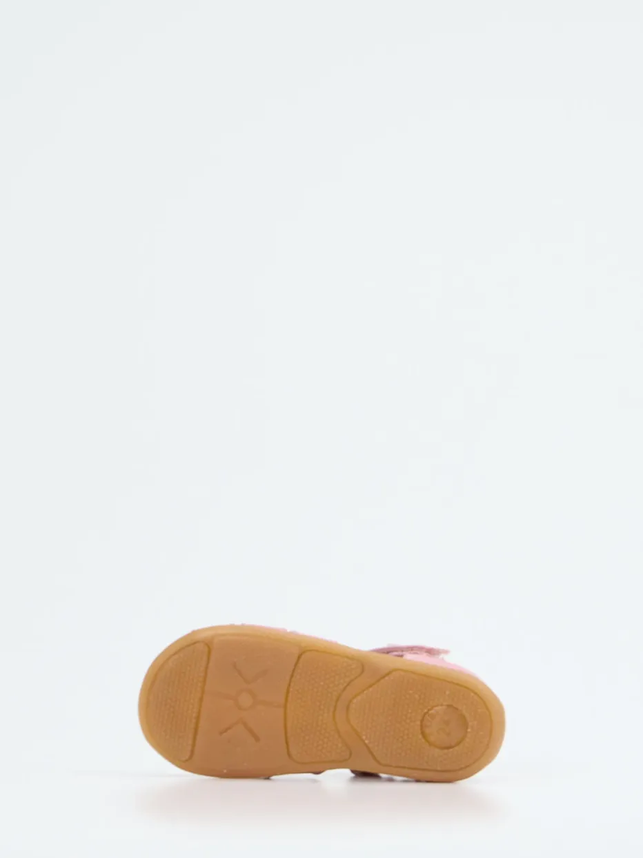 Diese geschlossene Kindersandale aus altrosa Kalbleder kombiniert angenehmen Tragekomfort mit funktionaler Ausstattung – ideal für kleine Laufanfänger.