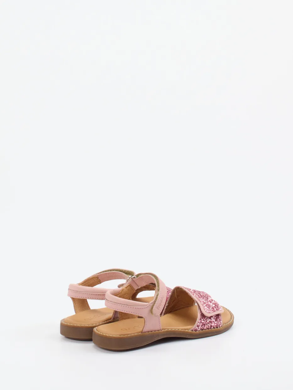 Die zartrosafarbene Froddo-Sandalette verbindet glitzernde Verspieltheit mit sinnvoller Funktionalität und kindgerechtem Komfort.