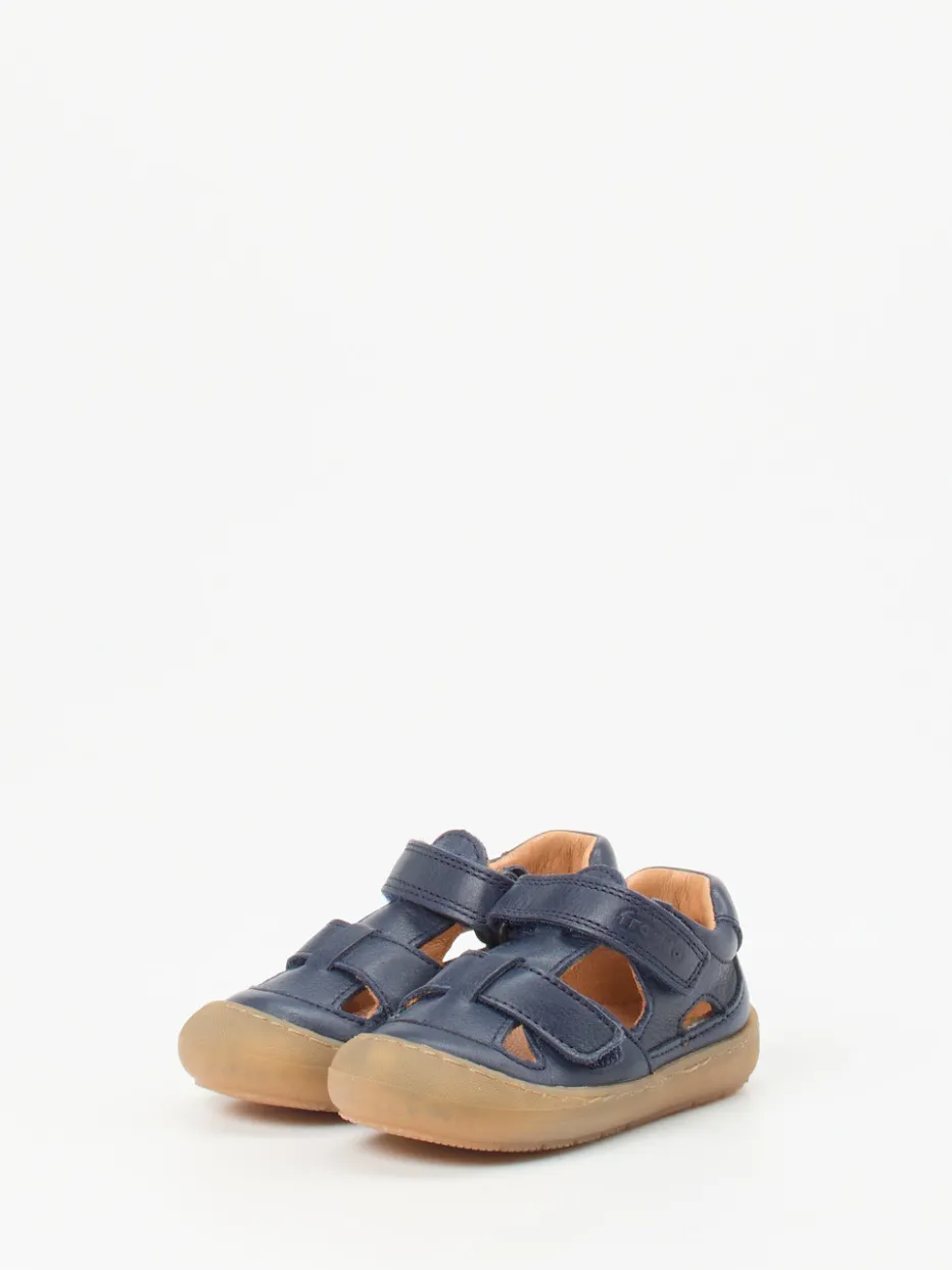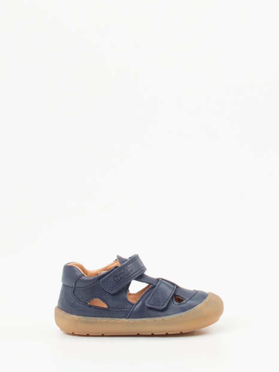 Diese geschlossenen Kindersandalen von Froddo vereinen hochwertiges Kalbleder mit funktionalem Komfort und bieten stilvolle Sicherheit für aktive Sommertage.