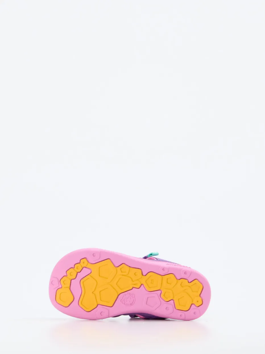 Kindersandalen von Affenzahn zeigen sich verspielt und funktional zugleich. Für sommerliche Abenteuer bieten diese Sandalen rutschfeste Sicherheit und luftige Bewegungsfreiheit. Das synthetische Obermaterial in matter Optik wird durch atmungsaktive Mesh-Einsätze ergänzt. In Flieder mit Akzenten in Pink, Sonnengelb und regenbogenfarbenen Elastikriemen gelingt ein echter Farb-Statement-Look. Der geschlossene Zehenbereich schützt beim Toben, während seitliche Aussparungen und Klettverschlüsse für Tragekomfort sorgen. Die ergonomisch profilierte Gummisohle unterstützt dynamische Bewegungen – bei Spiel, Freizeit oder am Strand. Optimal kombinierbar mit leichten Freizeitoutfits. Markenkomfort trifft kindgerechtes Design mit Outdoor-Potenzial.