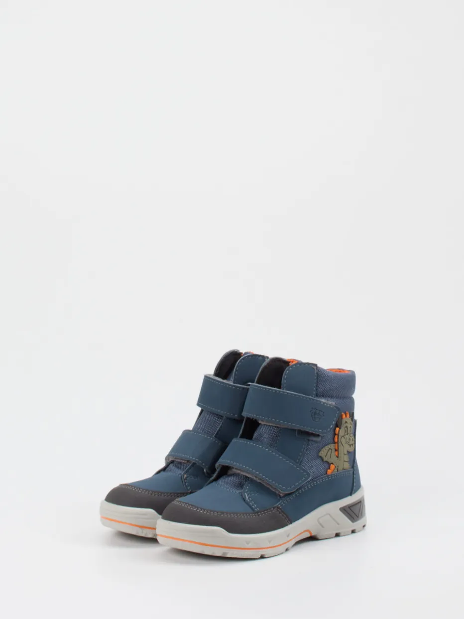 Drachenstark durch Herbst und Winter.Ricosta präsentiert einen funktionalen Kinderstiefel mit liebevoller Gestaltung. Für aktive Nachmittage im Park oder auf winterlichen Spazierwegen bietet dieser knöchelhohe Winterboot mit warmem Wollfutter zuverlässigen Schutz gegen Kälte. Das robuste Synthetikmaterial mit matter Oberfläche ist langlebig und zeigt sich in Dunkelblau mit kontrastierendem orangefarbenem Innenfutter. Klettverschlüsse erleichtern selbstständiges An- und Ausziehen, während die verstärkte Zehenkappe und die griffige PU-Profilsohle Stabilität und Trittsicherheit fördern. Das auffällige Drachenmotiv vermittelt spielerische Coolness und unterstützt aktuelle Kids-Trends wie „Character Styles“. Kindgerecht funktional mit Outdoor-Tauglichkeit – typisch Ricosta.
