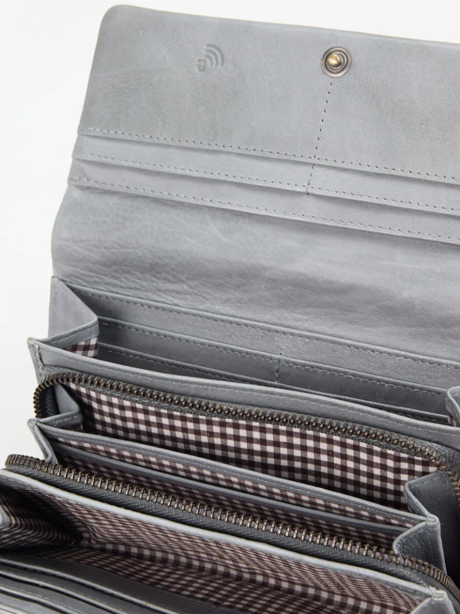 Die Marke Jack Kinsky präsentiert dieses Portemonnaie aus der Serie Nassau in einem tollen Farbton! Das hochwertige, steingraue Kalbleder überzeugt durch die modische Struktur in angesagter Vintage-Optik. Karten, Bargeld und Belege können dank der großzügigen Aufteilung sicher und praktisch verstaut werden. Das eingravierte Markenemblem ziert unverkennbar. Für den Schutz Ihrer persönlichen Daten verfügt diese Geldbörse zusätzlich über einen zuverlässigen RFID-Blocker. – Material: Kalbleder – Farbe: grau – Größe: ca. 12 x 19 x 4 cm (H x B x T) – Innen: 18 Kartenfächer, zwei Geldscheinfächer, zwei Belegfächer, ein zweigeteiltes Münzfach mit einem innenliegendem Fach sowie Reißverschluss – Verschluss: Druckknopf