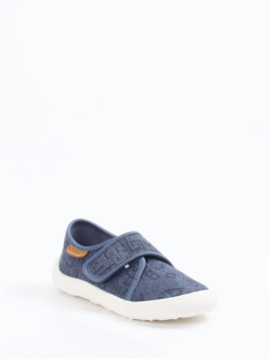 Ob in der Kita oder im Kinderzimmer – das jeansblaue Modell mit mattierter Oberfläche und Allover-Logomuster bietet sicheren Komfort für aktive Füße. Die flexible Gummisohle ist rutschhemmend profiliert. Ein gepolsterter Einstieg sowie der doppelte Klettverschluss erleichtern das An- und Ausziehen. Ton-in-Ton-Nähte und Logo-Prägungen unterstreichen den cleanen Look. Ideal kombinierbar mit Sweatjacke und Jeans für einen entspannten Stil.