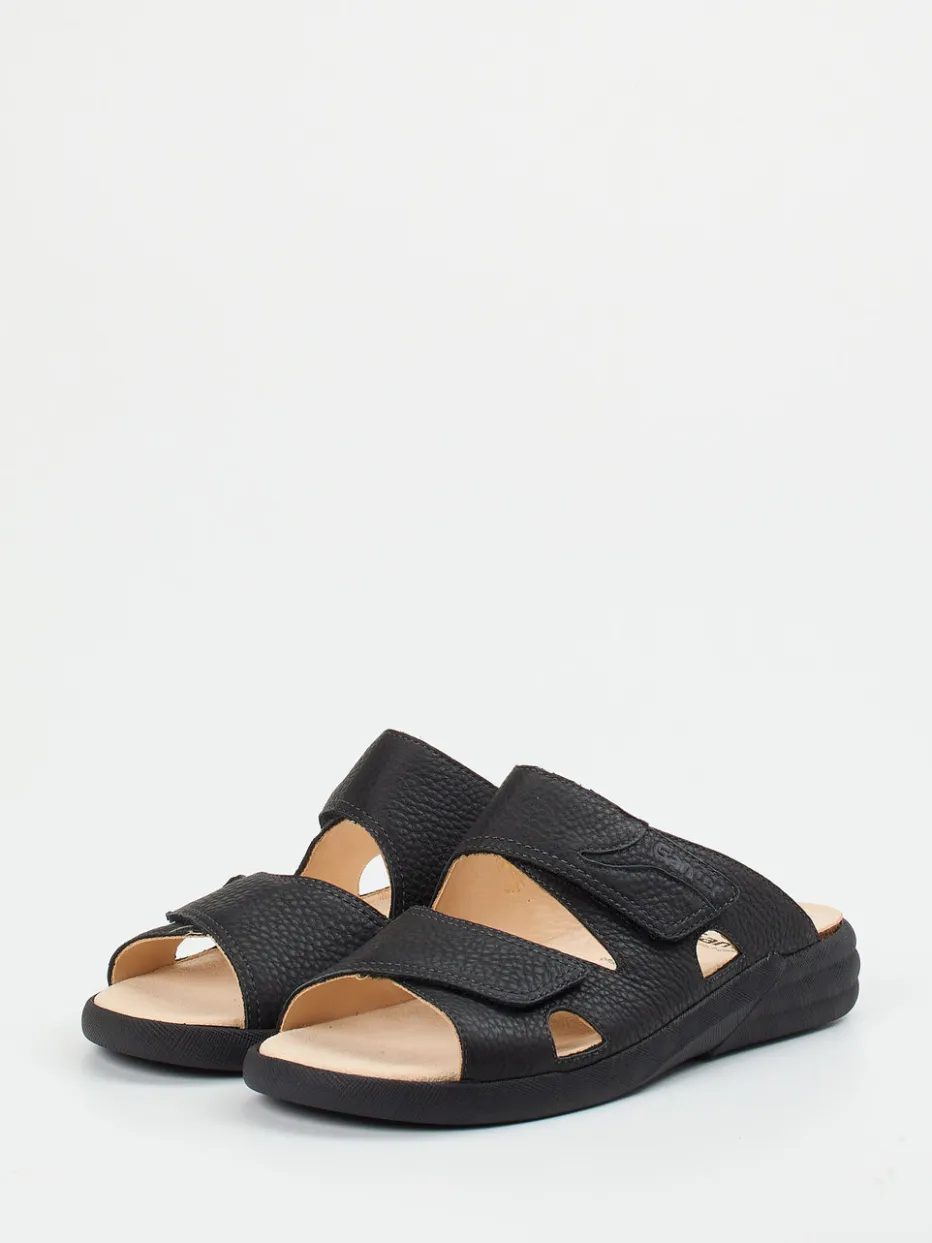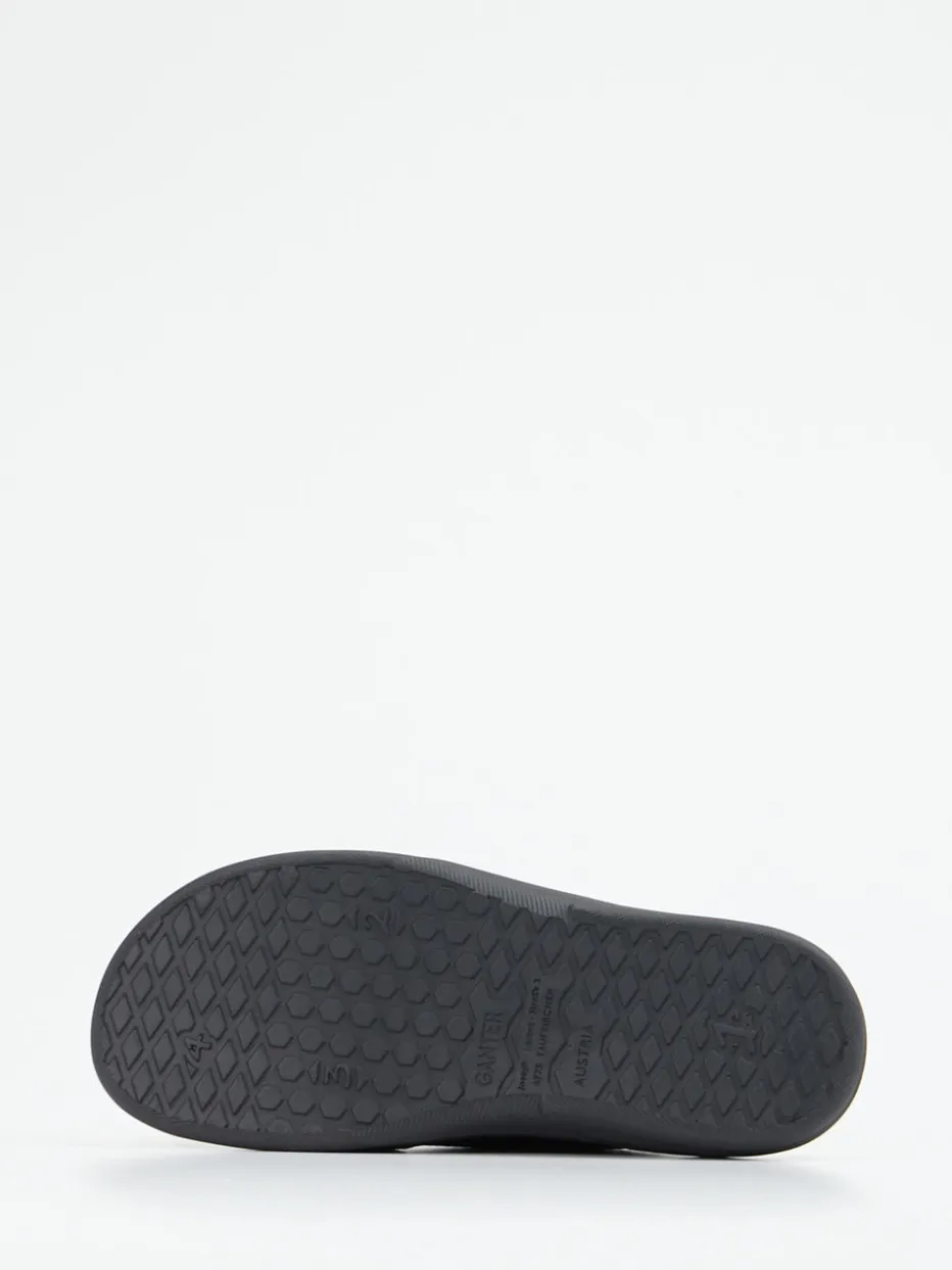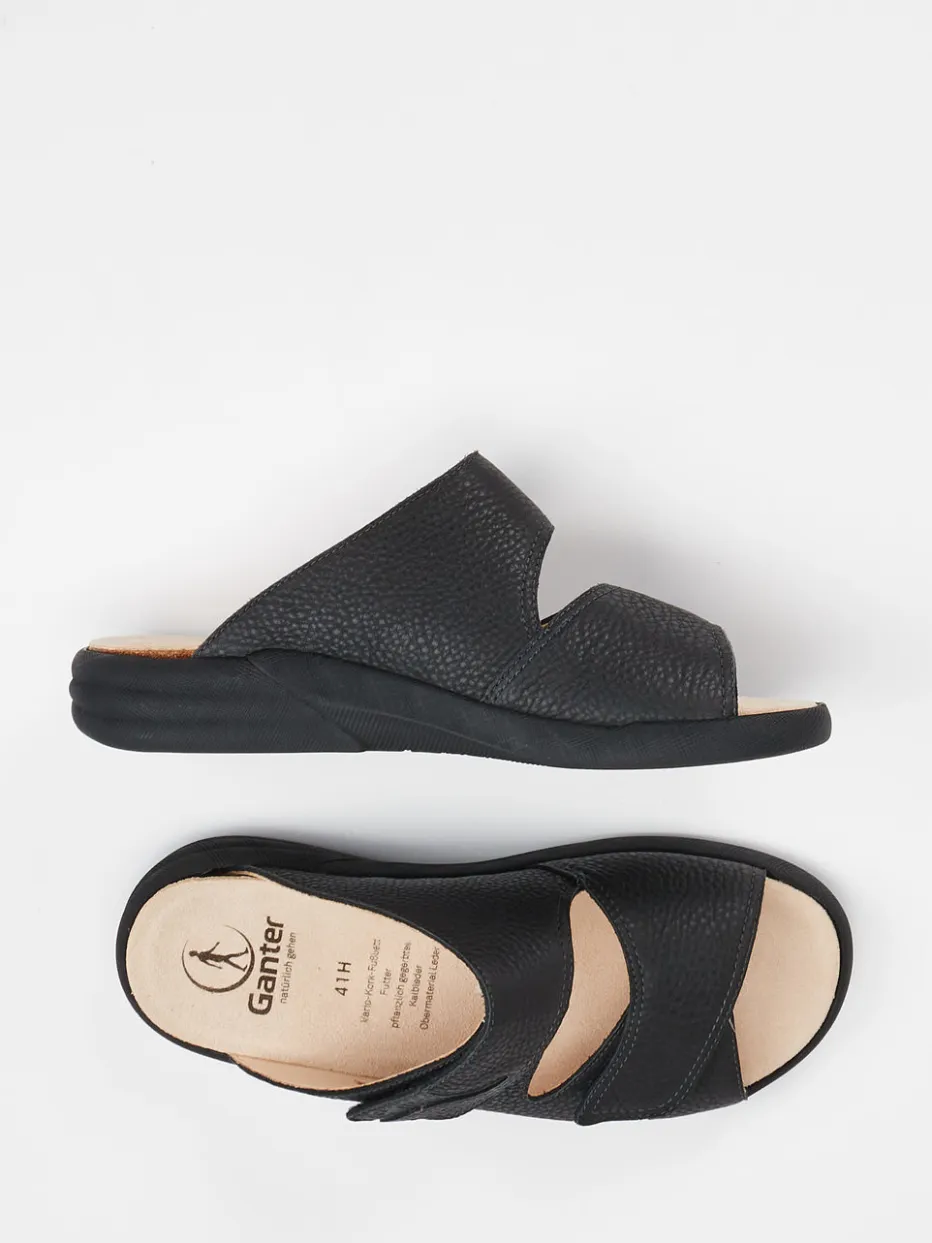 Wertig und alltagsgerecht gedacht.Ganter präsentiert mit dieser Komfort-Pantolette ein puristisches Damenmodell für Freizeit und Zuhause. Ideal für entspannte Stunden auf den Beinen: Das genarbte Kalbleder in tiefem Schwarz verleiht der Pantoletten-Silhouette eine strukturierte, dezente Ästhetik und ist vegetabil gegerbt. Zwei breite Riemen mit Klettverschluss ermöglichen individuelle Anpassung, ergänzt von einem weichen, lederbezogenen Fußbett für orthopädische Entlastung. Die ergonomisch geformte Laufsohle bietet sicheren Halt – bei maximalem Komfort. Dank der schlichten Optik passt das Modell besonders gut zu loungetauglichen Outfits oder minimalistischer Casualwear. Ganter steht für durchdachten Komfort mit nachhaltig gefertigten Materialien.