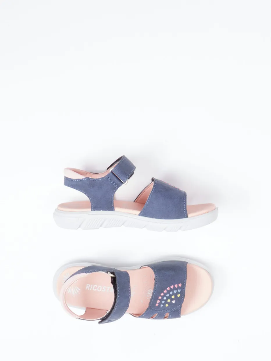 Spielerischer Komfort für Sommertage.Ricosta präsentiert eine hochwertige Kinder-Klettsandale, gefertigt aus softem Nubukleder. Für ausgiebige Tage im Freien bietet der offene, ergonomische Schnitt mit weicher Microfaserfütterung und gepolsterter Innensohle angenehmen Tragekomfort. Das dunkelblaue Obermaterial mit matter Oberfläche kontrastiert charmant mit pastellrosafarbenem Innenfutter und farbenfroher Herz-Stickerei. Dank rutschfester PU-Sohle mit gutem Grip und einfachem Klettverschluss bietet die Sandale Kindern zuverlässigen Halt und selbstständiges An- und Ausziehen. Ein modisches Detail für verspielte Looks in der aktuellen Kidswear-Trendpalette. Kindgerechtes Design mit gutem Gefühl – typisch Ricosta.